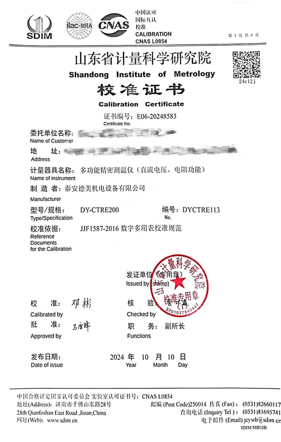 | 上一條:制冷恒溫槽(-60~95℃)校準(zhǔn)證書(shū) | 下一條:水三相點(diǎn)瓶?jī)鲋婆c保存裝置校準(zhǔn)證書(shū) |
