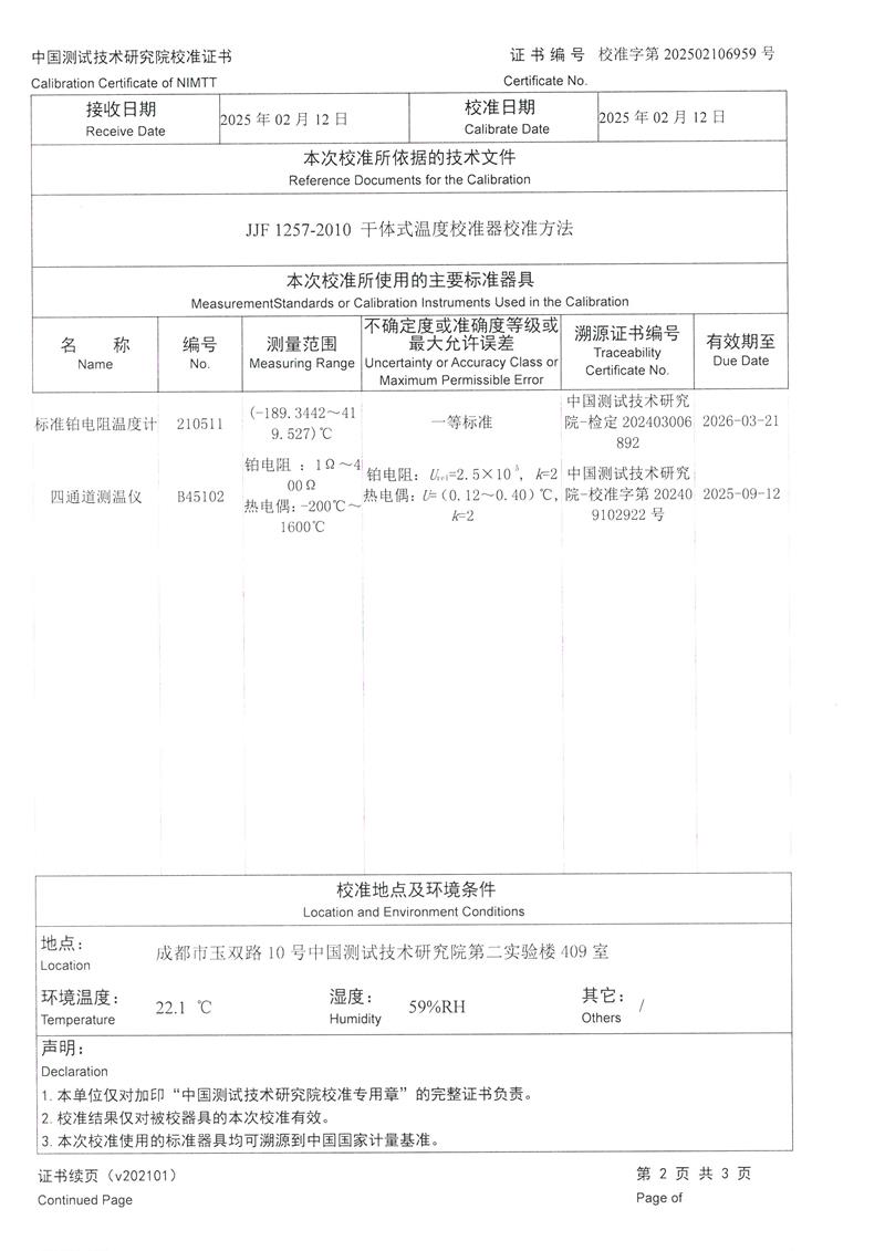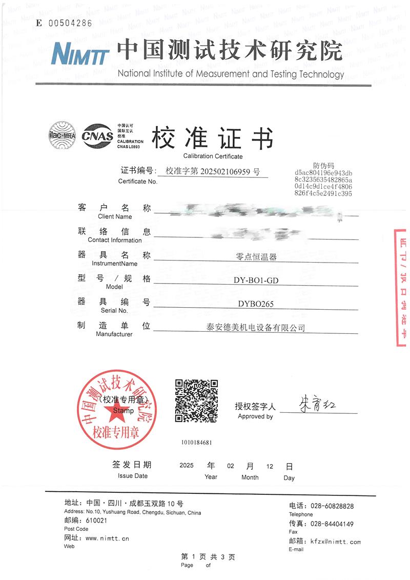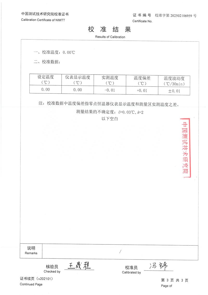 | 上一條:高精度數(shù)字溫度計(jì)(-80~300℃)校準(zhǔn)證書 | 下一條:水三相點(diǎn)瓶凍制與保存裝置校準(zhǔn)證書 |