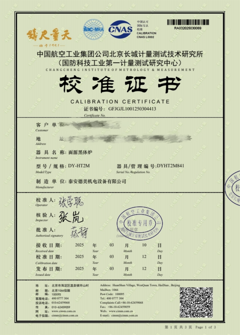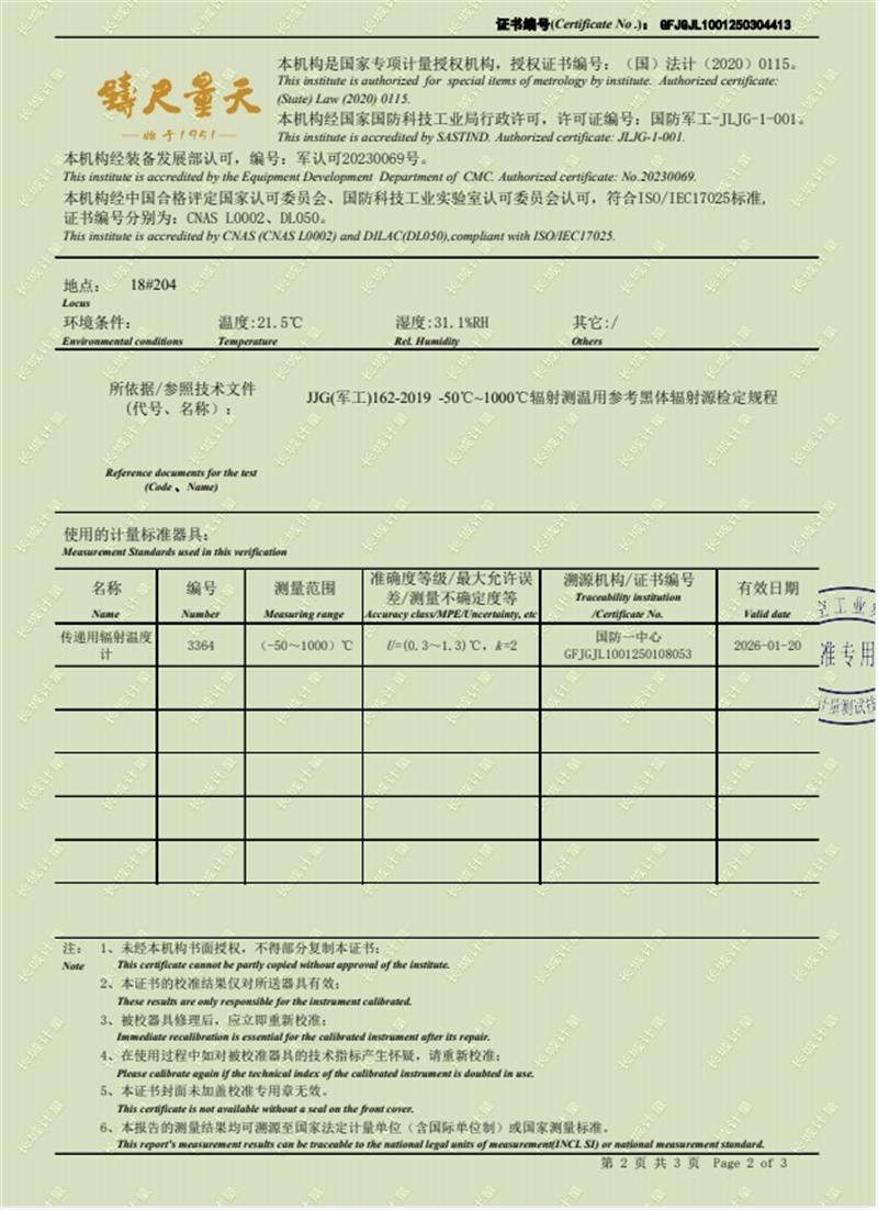 面源黑體爐(室溫+5-500℃)校準(zhǔn)證書(shū) 2025-3-15 本文被閱讀 5844 次