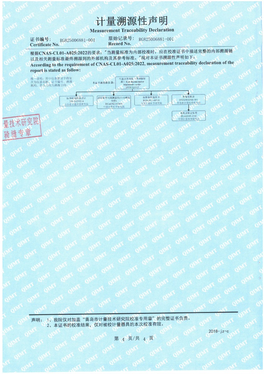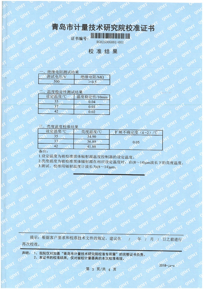 | 上一條:面源黑體爐(室溫+5-500℃)校準(zhǔn)證書 | 下一條:水三相點(diǎn)瓶凍制與保存裝置校準(zhǔn)證書 |
