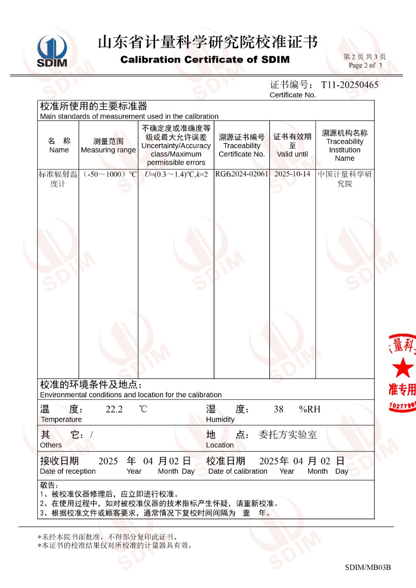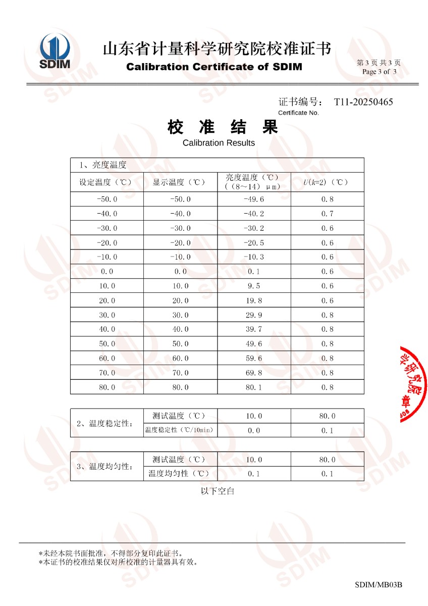 低溫浴式面源黑體爐(-50-80℃)校準(zhǔn)證書 2025-4-9 本文被閱讀 4167 次