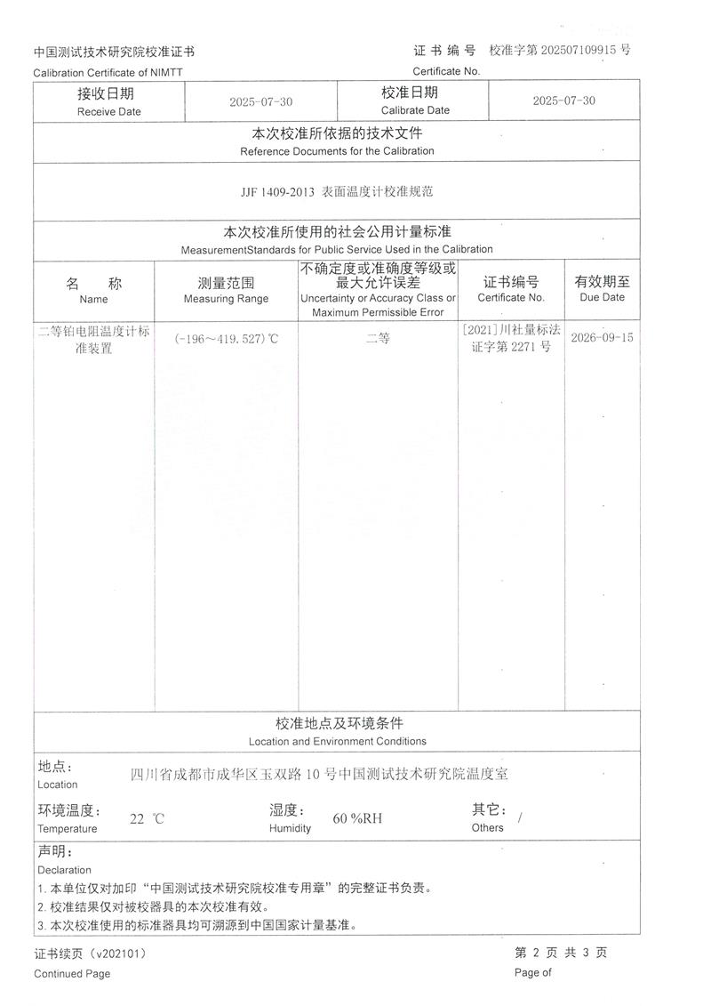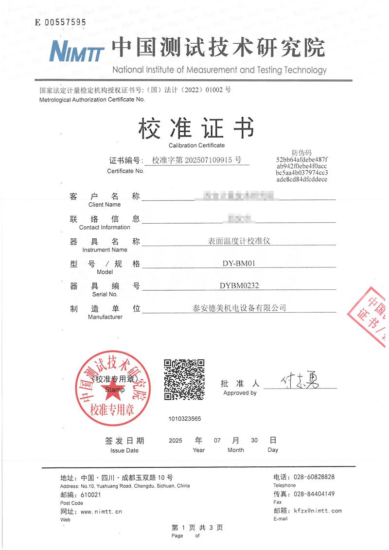 | 上一條:高精度低溫黑體(-10-100℃)校準(zhǔn)證書(shū) | 下一條:水三相點(diǎn)瓶?jī)鲋婆c保存裝置校準(zhǔn)證書(shū) |
