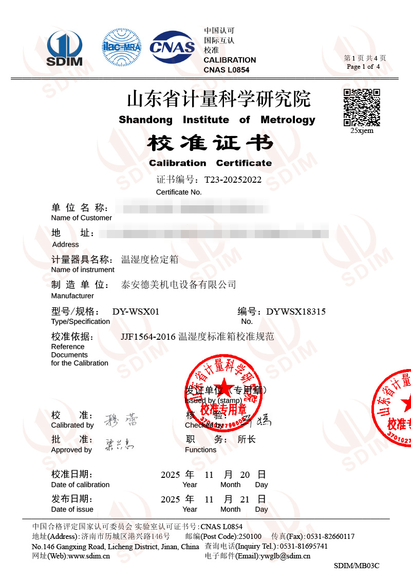 溫濕度檢定箱校準證書 2025-11-25 本文被閱讀 1420 次