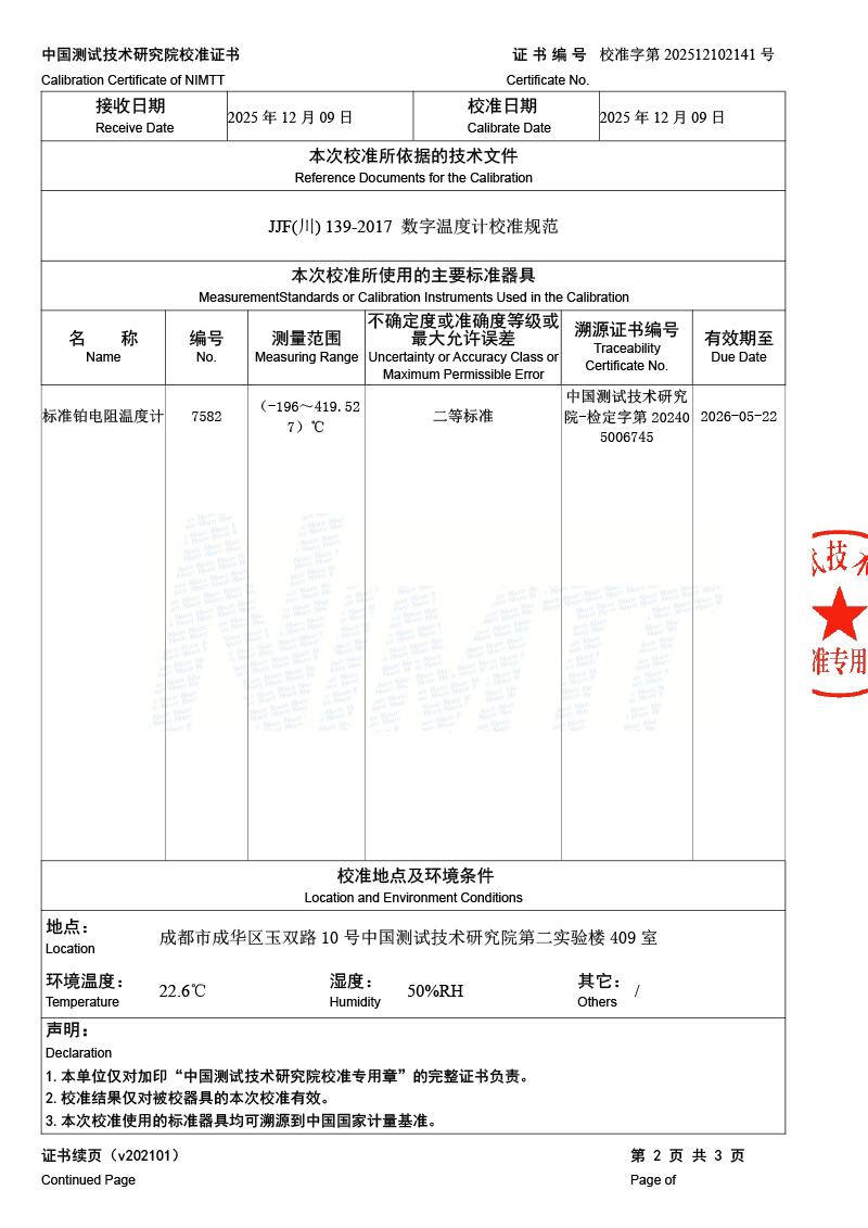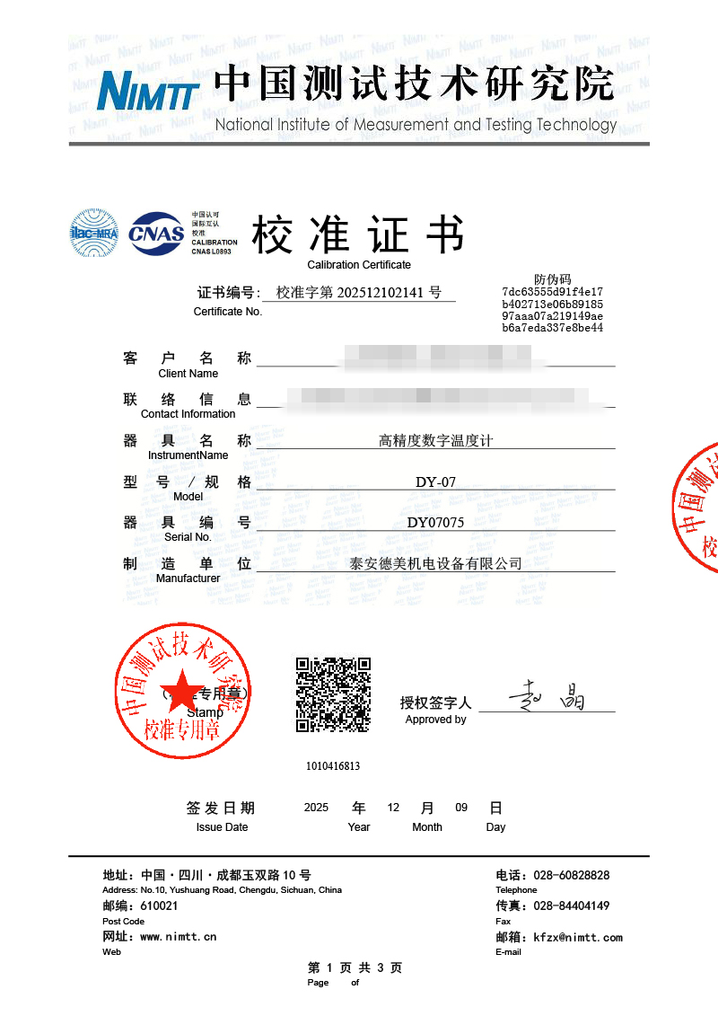 高精度數(shù)字溫度計校準證書 2025-12-11 本文被閱讀 995 次
