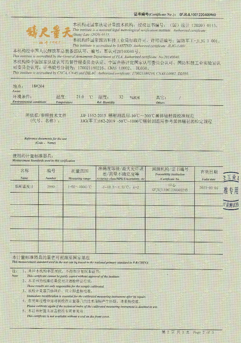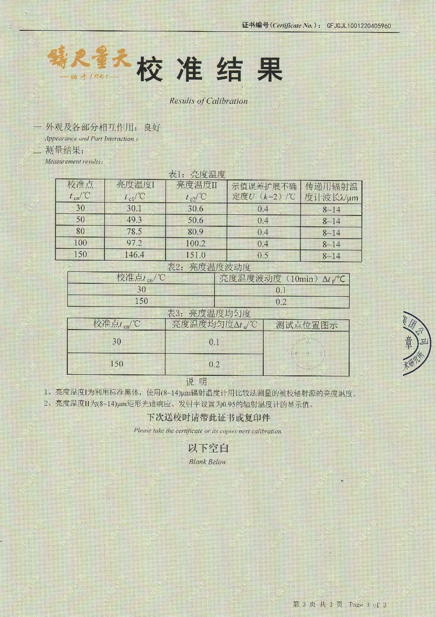 | 上一條:浙江弘志計(jì)量測試有限公司-黑體輻射源 | 下一條:水三相點(diǎn)瓶凍制與保存裝置校準(zhǔn)證書 |