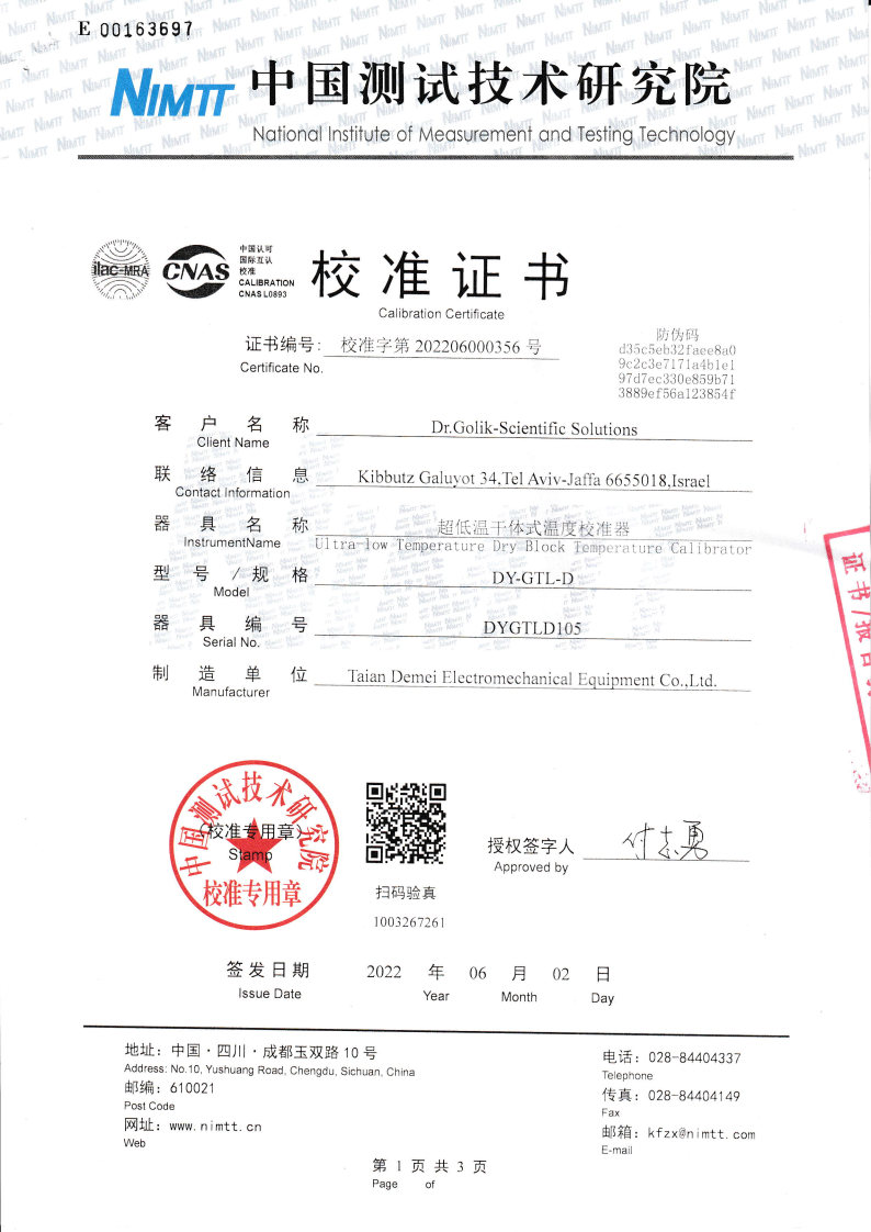 以色列-超低溫干體爐 2022-6-7 本文被閱讀 15002 次