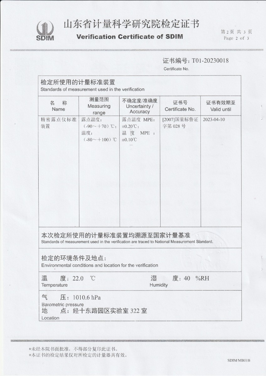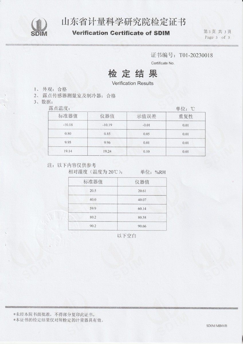 廈門新能安科技有限公司 冷鏡式露點儀 檢定證書 2023-2-25 本文被閱讀 10402 次