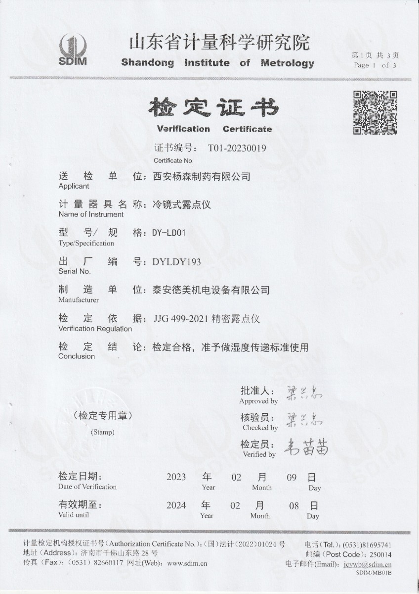 | 上一條:廈門新能安科技有限公司 冷鏡式露點(diǎn)儀(溫度) 校準(zhǔn)證書 | 下一條:水三相點(diǎn)瓶凍制與保存裝置校準(zhǔn)證書 |