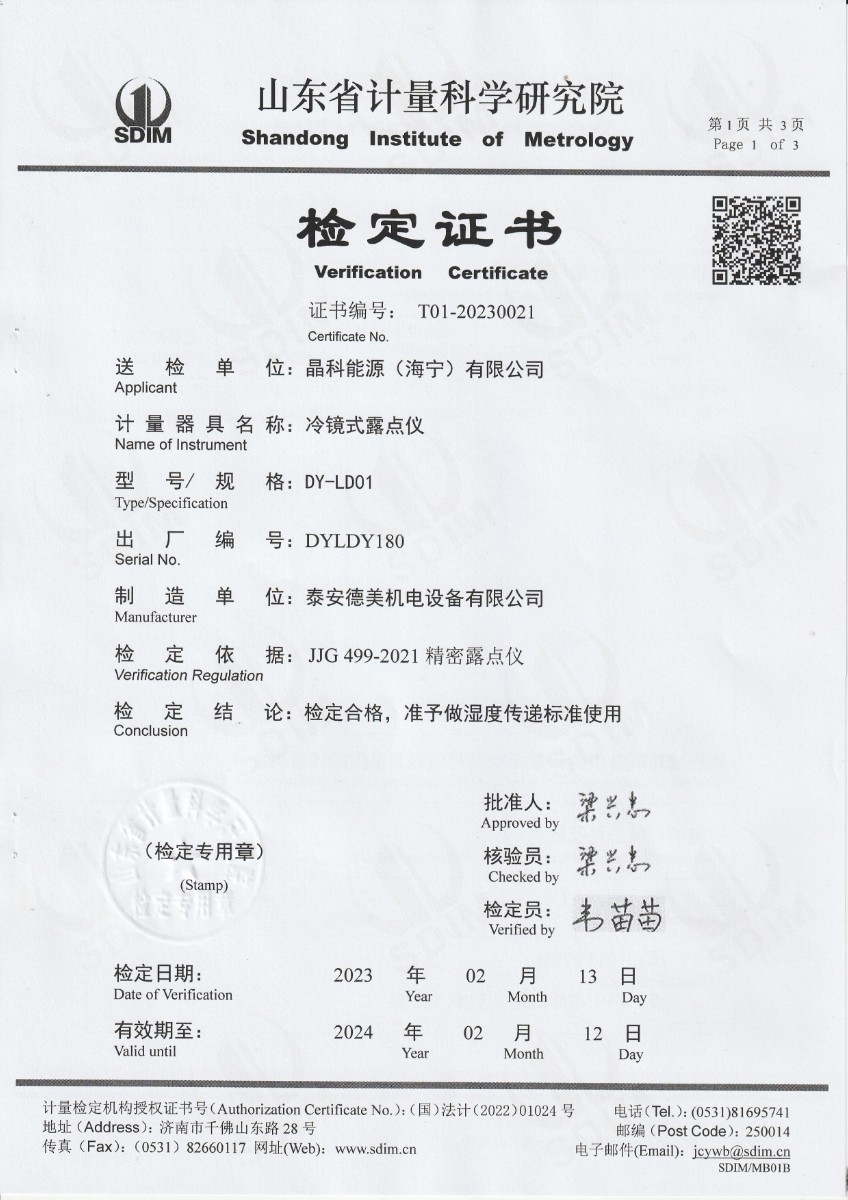 | 上一條:西安楊森制藥有限公司 冷鏡式露點(diǎn)儀(溫度) 校準(zhǔn)證書 | 下一條:水三相點(diǎn)瓶凍制與保存裝置校準(zhǔn)證書 |