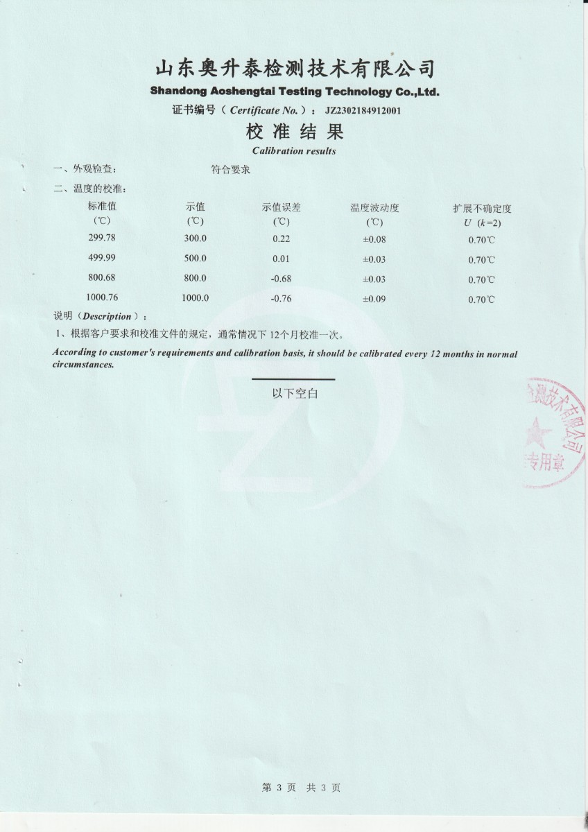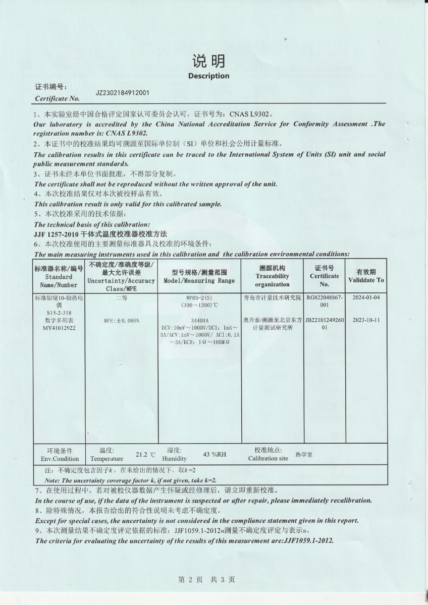 | 上一條:西安天元航空科技股份有限公司 零點恒溫器 校準證書 | 下一條:水三相點瓶凍制與保存裝置校準證書 |