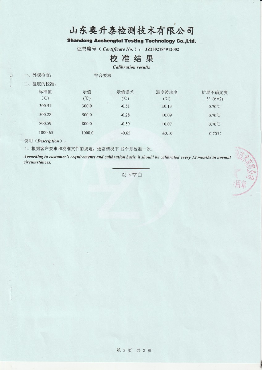 甘肅東興嘉宇新材料有限公司 干體溫度校驗爐 校準證書(2) 2023-2-25 本文被閱讀 14288 次
