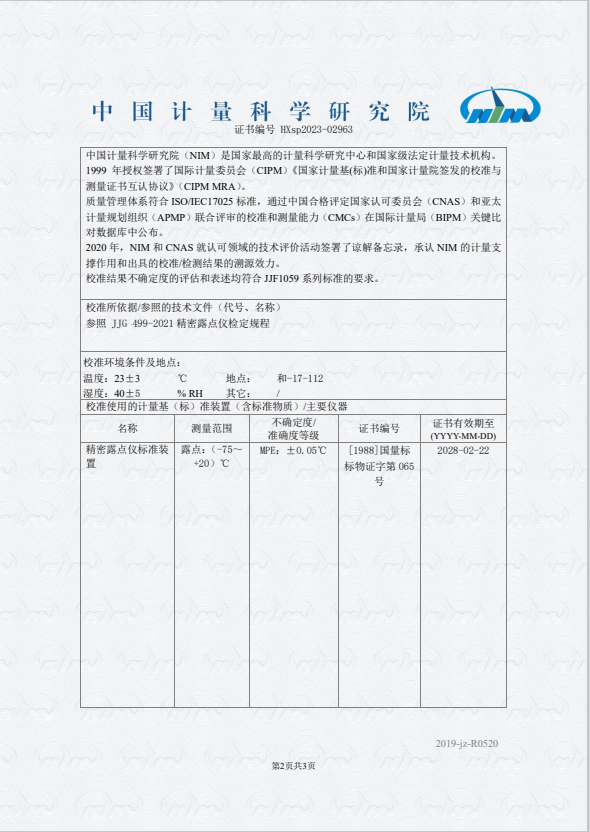 露點(diǎn)儀校準(zhǔn)證書 2023-11-9 本文被閱讀 10302 次