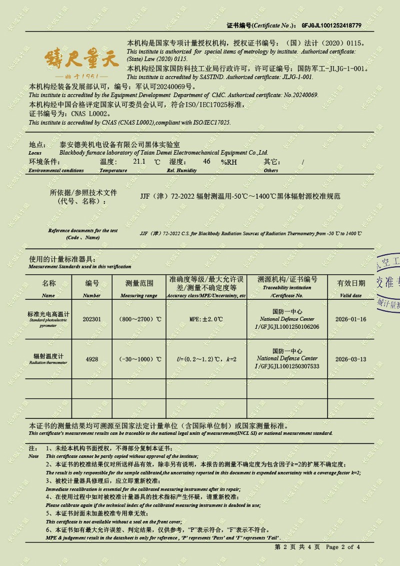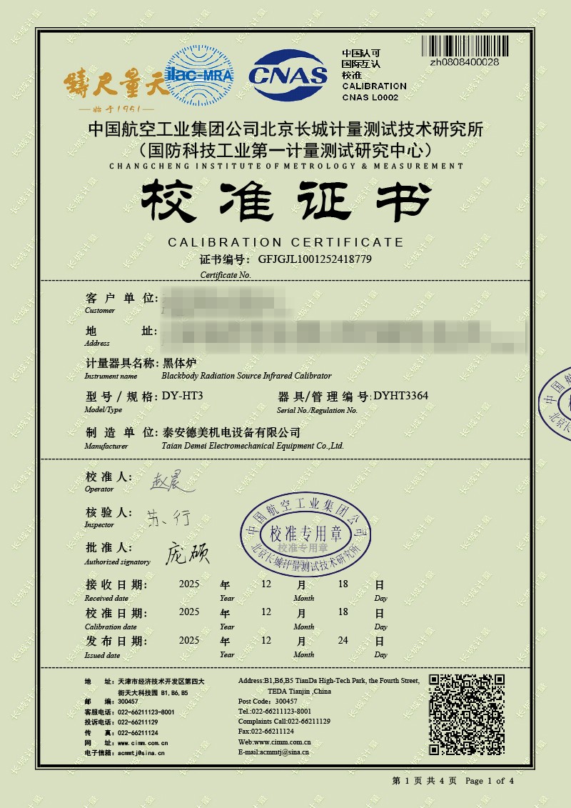 黑體爐DY-HT3校準(zhǔn)證書 2026-1-4 本文被閱讀 232 次