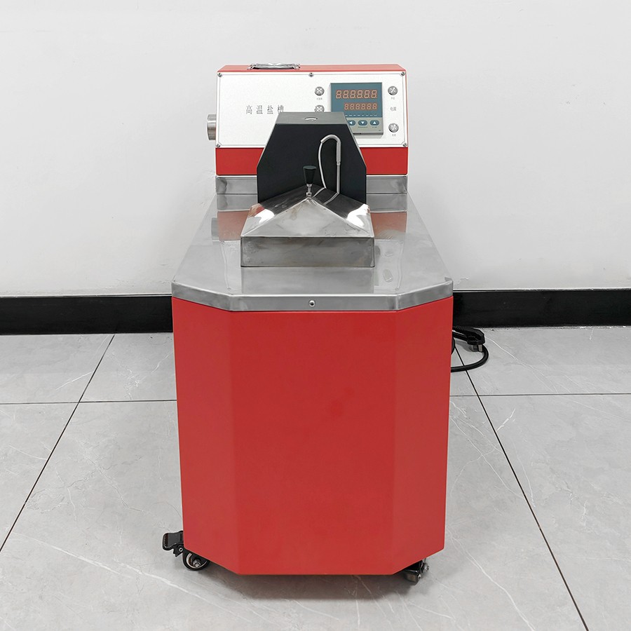 產(chǎn)品采用先進的自動控制系統(tǒng),界面友好,操作方便,控制精度高。主要是由加熱系統(tǒng)、控溫系統(tǒng)、攪拌系統(tǒng)所組成。槽體分混合區(qū)與工作區(qū)。在混合區(qū)內由加熱器產(chǎn)生的熱量使槽內固態(tài)鹽(介質)升溫熔化成鹽液,當鹽液溫度上升到接近設定溫度時,控溫系統(tǒng)根據(jù)感溫器測得的溫度來控制加熱器工作,再經(jīng)過攪拌系統(tǒng)的強烈攪拌充分均勻后的鹽液(介質)送入少受外界干擾的工作區(qū)。從而得到一個溫度穩(wěn)定溫場均勻的液體空間。