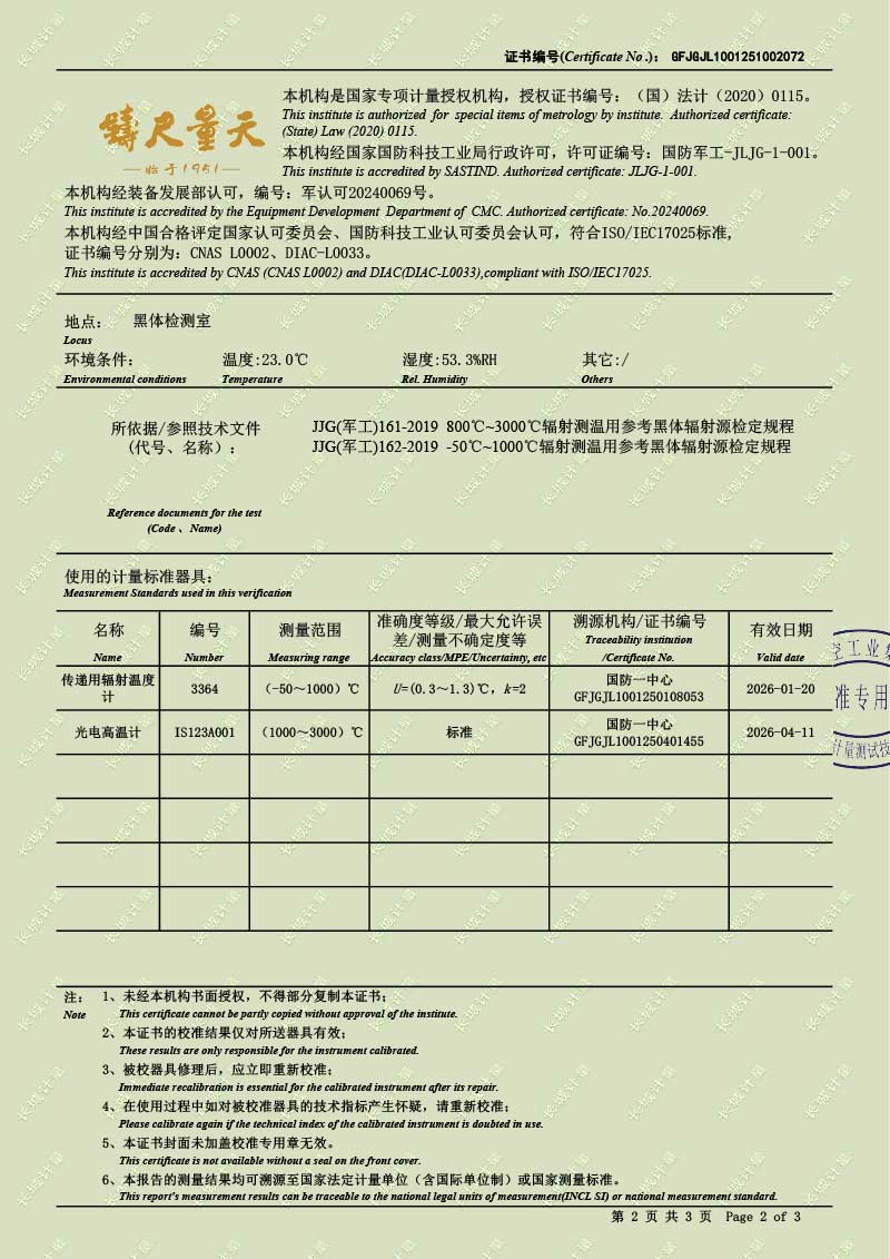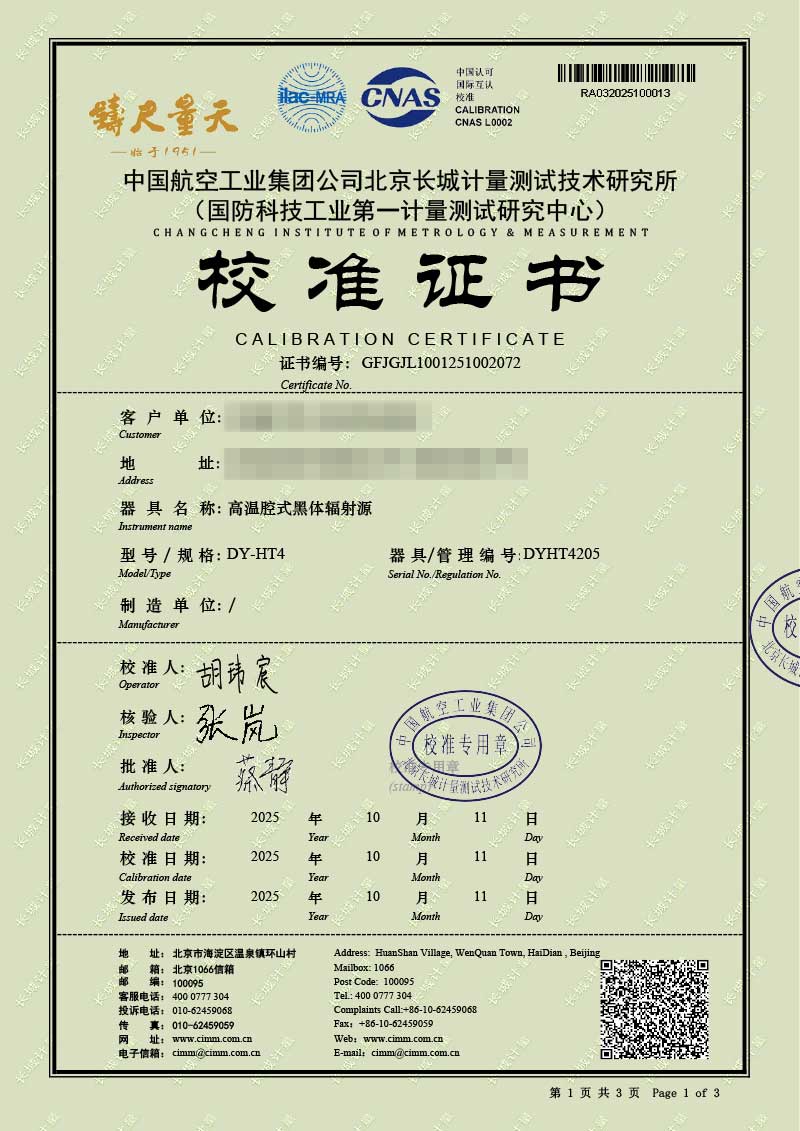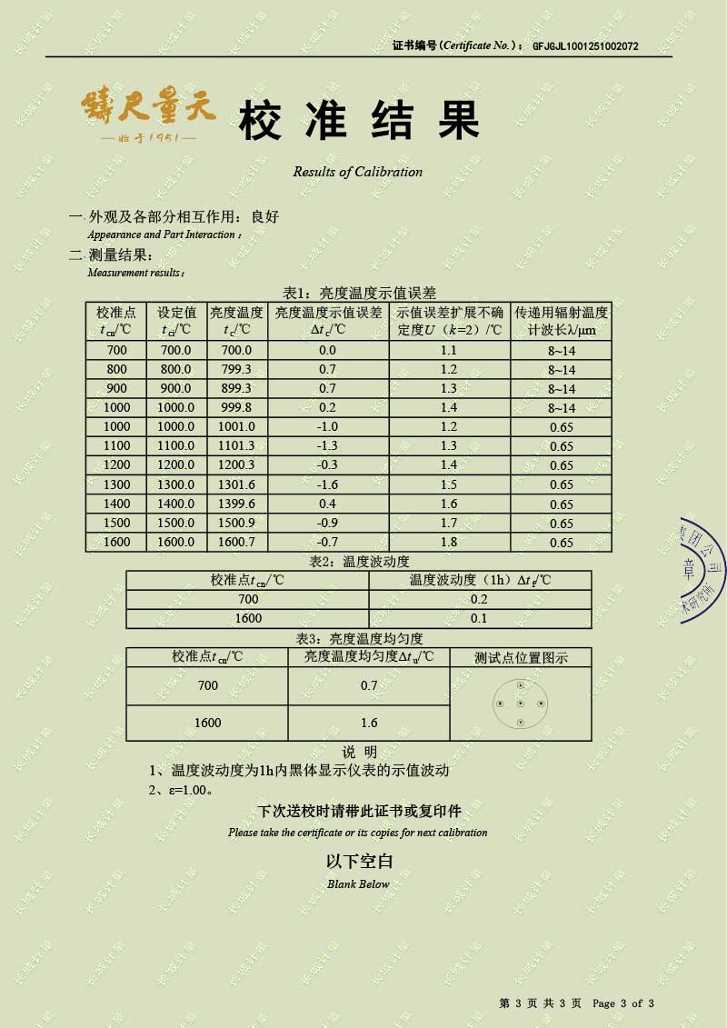 | 上一條:低溫液槽式黑體爐(-40-100℃)校準(zhǔn)證書 | 下一條:水三相點瓶凍制與保存裝置校準(zhǔn)證書 |