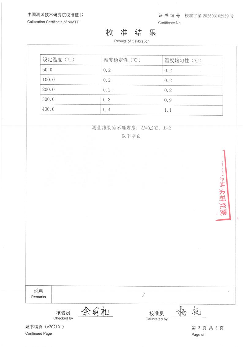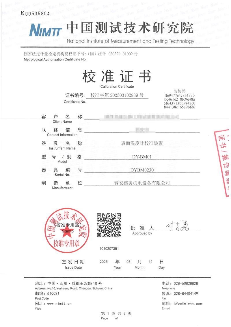 | 上一條:DY-BM02型表面溫度計校驗爐 | 下一條:水三相點瓶凍制與保存裝置校準證書 |