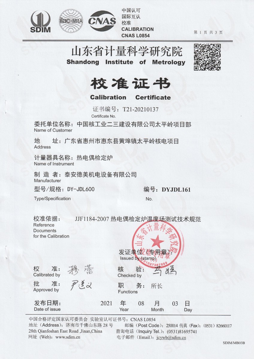 | 上一條:中國核工業(yè)二三建設(shè)有限公司太平嶺項目部-精密恒溫油槽 | 下一條:水三相點瓶凍制與保存裝置校準(zhǔn)證書 |