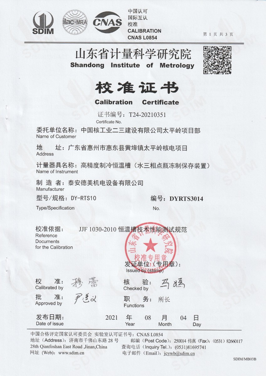 | 上一條:中國核工業(yè)二三建設(shè)有限公司太平嶺項目部-熱電偶檢定爐 | 下一條:水三相點(diǎn)瓶凍制與保存裝置校準(zhǔn)證書 |