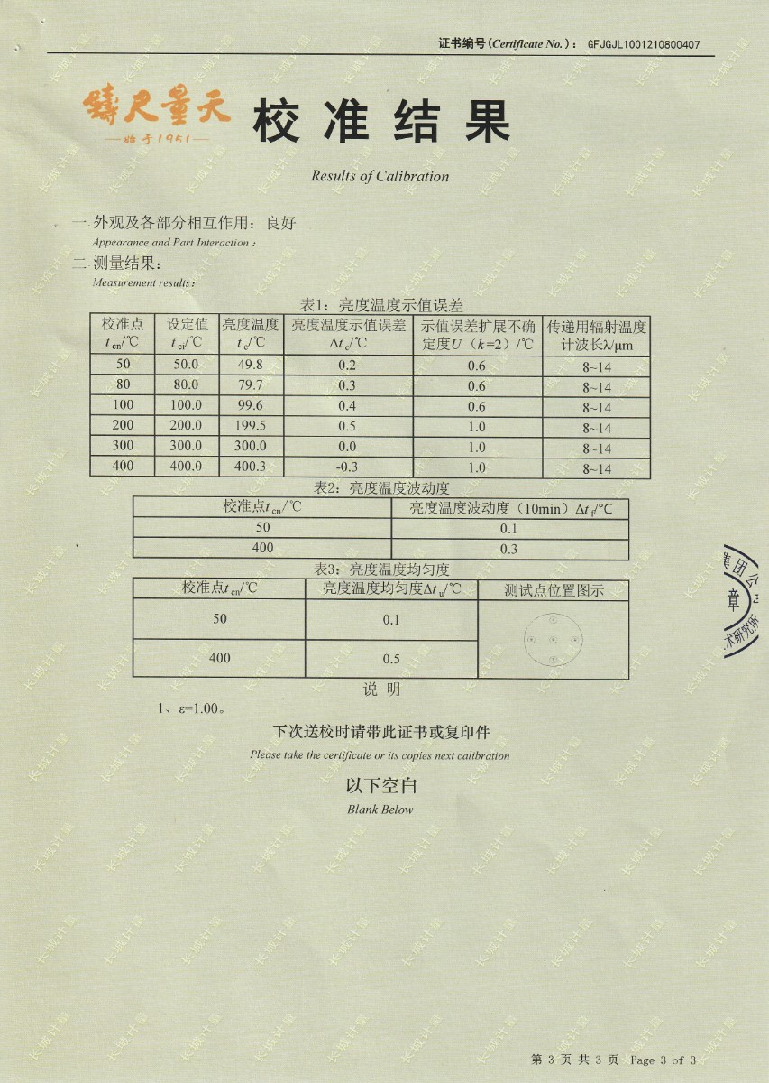 | 上一條:迪皮埃風(fēng)電葉片揚(yáng)州有限公司-面源黑體輻射源 | 下一條:水三相點(diǎn)瓶凍制與保存裝置校準(zhǔn)證書 |