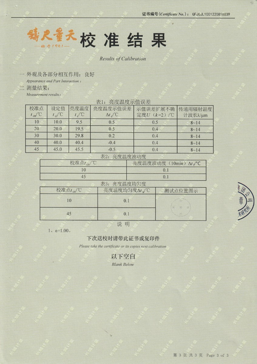 | 上一條:中國科學(xué)院長春光學(xué)精密機械與物理研究所-黑體爐DY-HT1-1 | 下一條:水三相點瓶凍制與保存裝置校準證書 |