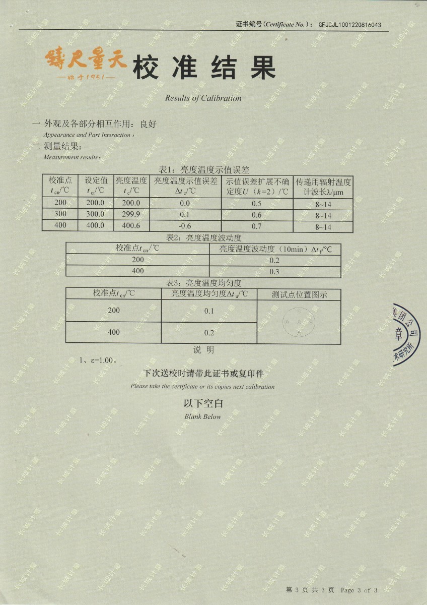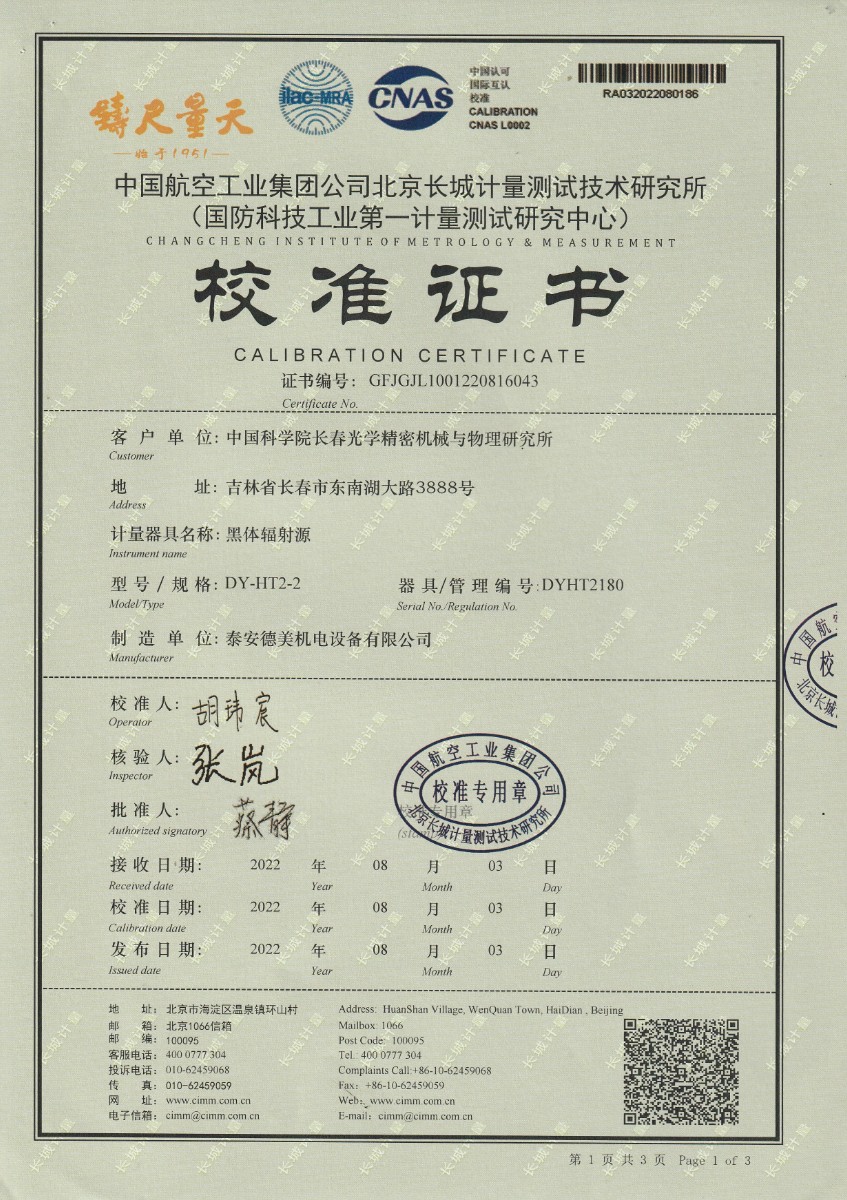 | 上一條:中國科學(xué)院長春光學(xué)精密機(jī)械與物理研究所-黑體爐DY-HT2-1 | 下一條:水三相點(diǎn)瓶凍制與保存裝置校準(zhǔn)證書 |