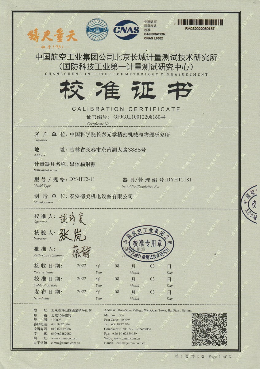 中國科學院長春光學精密機械與物理研究所-黑體爐DY-HT2-11 2022-9-5 本文被閱讀 14553 次