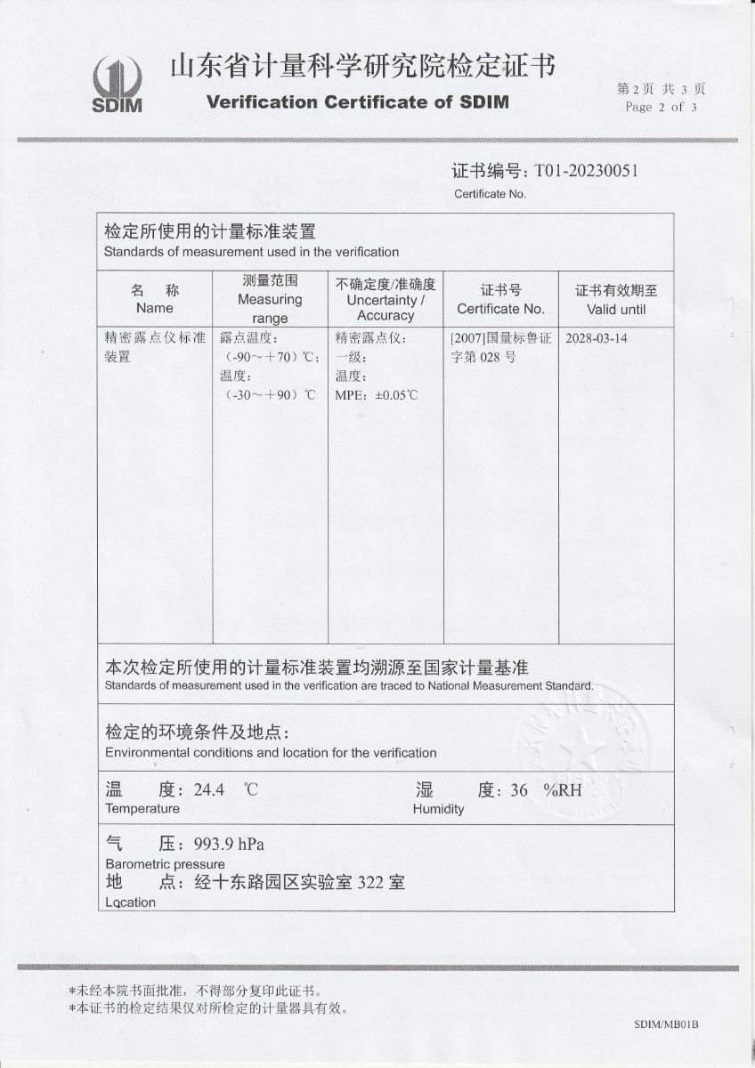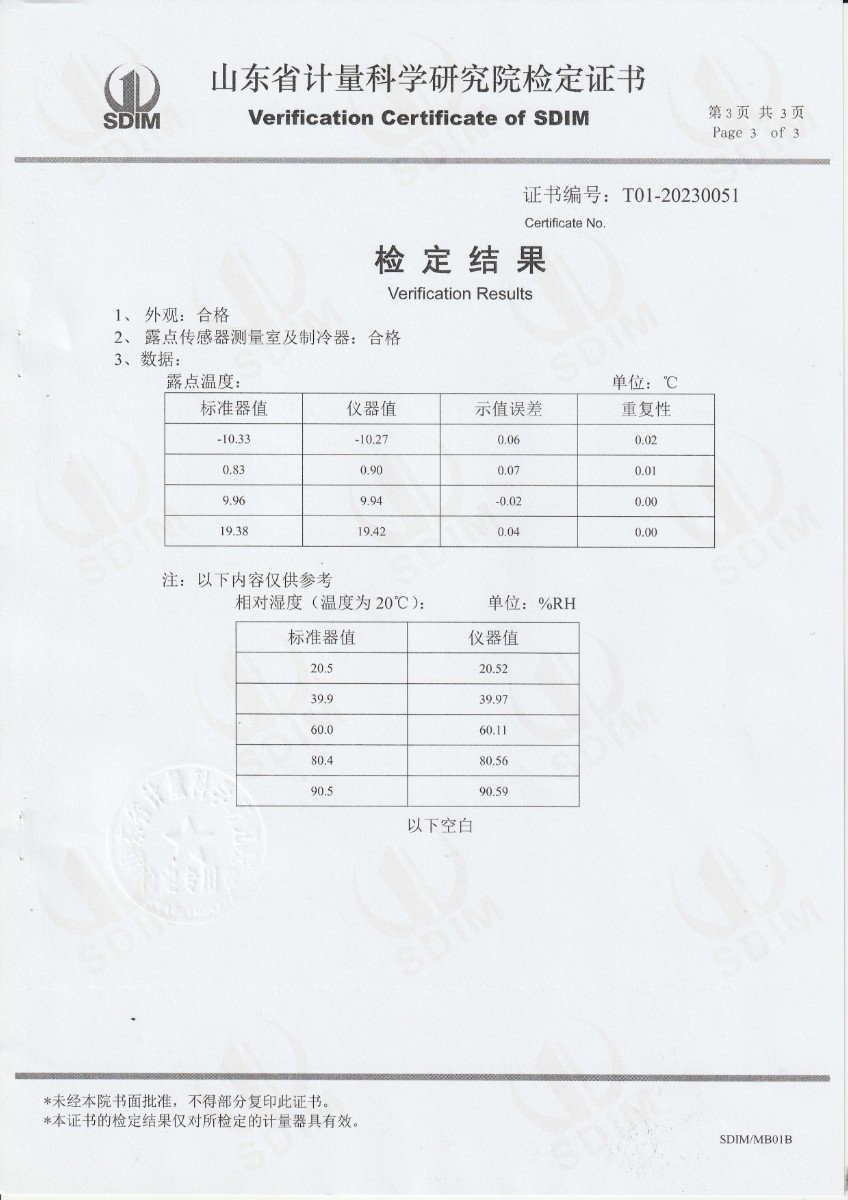 晶科能源(義烏)有限公司 精密露點儀 檢定證書 2023-5-4 本文被閱讀 12288 次