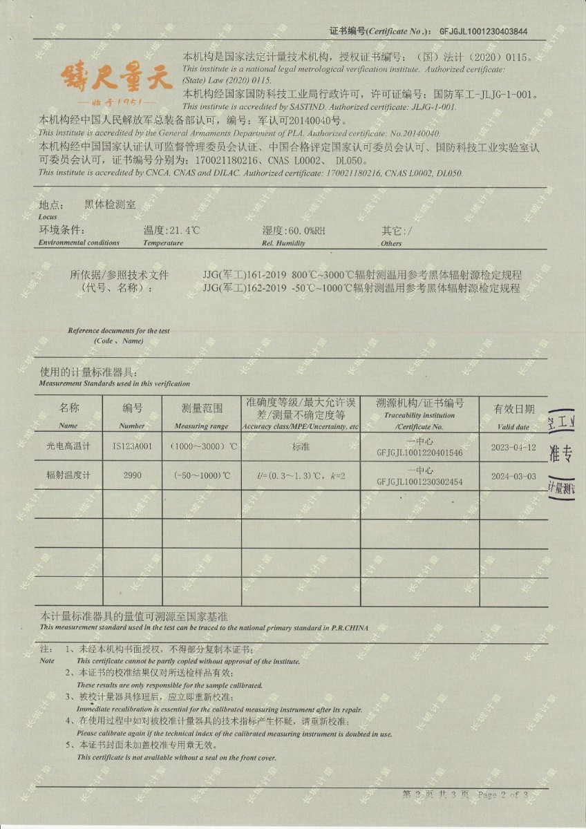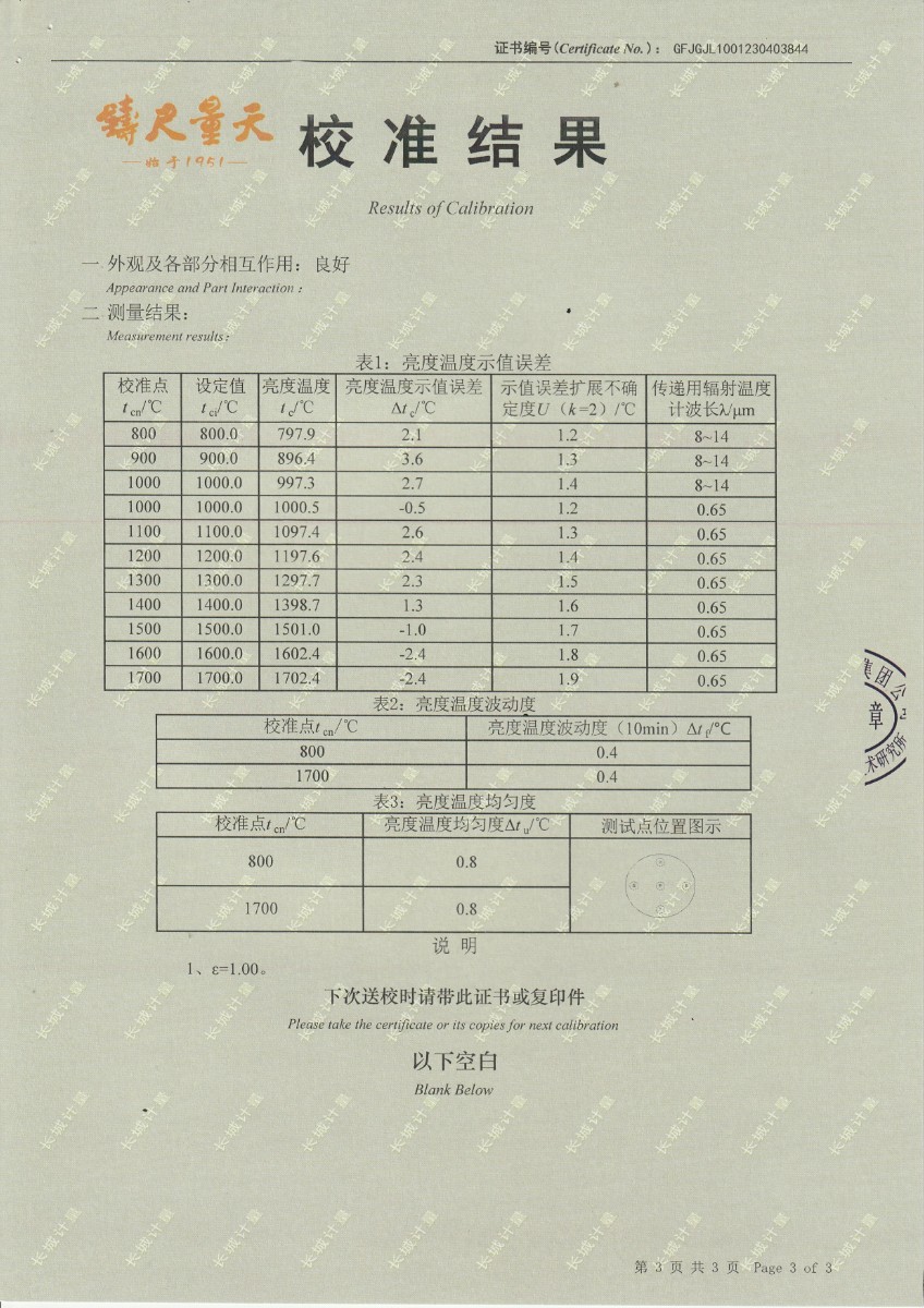 | 上一條:晶科能源(義烏)有限公司 溫濕度檢定箱 校準(zhǔn)證書 | 下一條:水三相點瓶凍制與保存裝置校準(zhǔn)證書 |