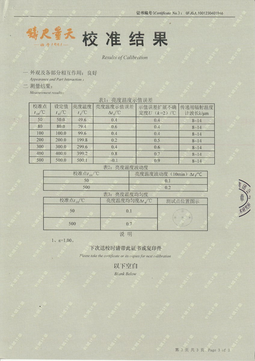 浙江弘志計量測試有限公司 黑體輻射源 校準(zhǔn)證書 2023-5-4 本文被閱讀 13815 次