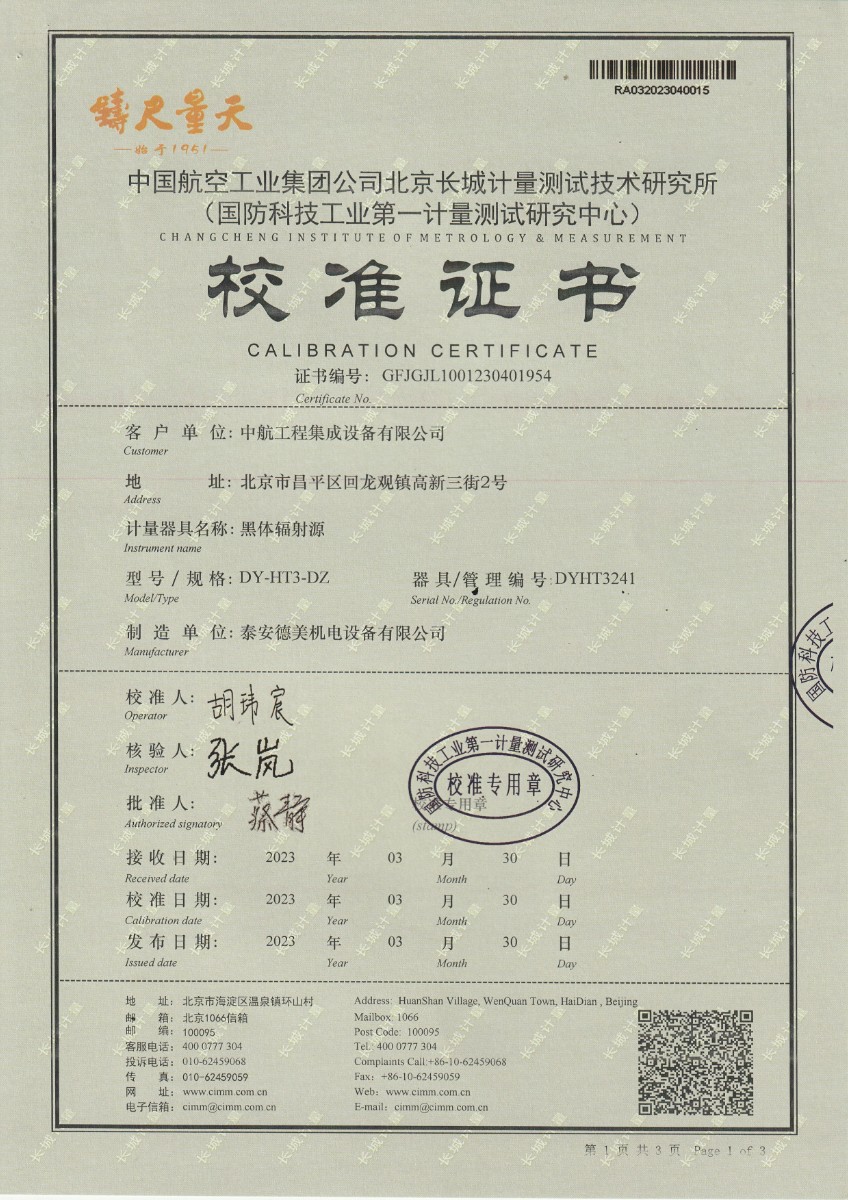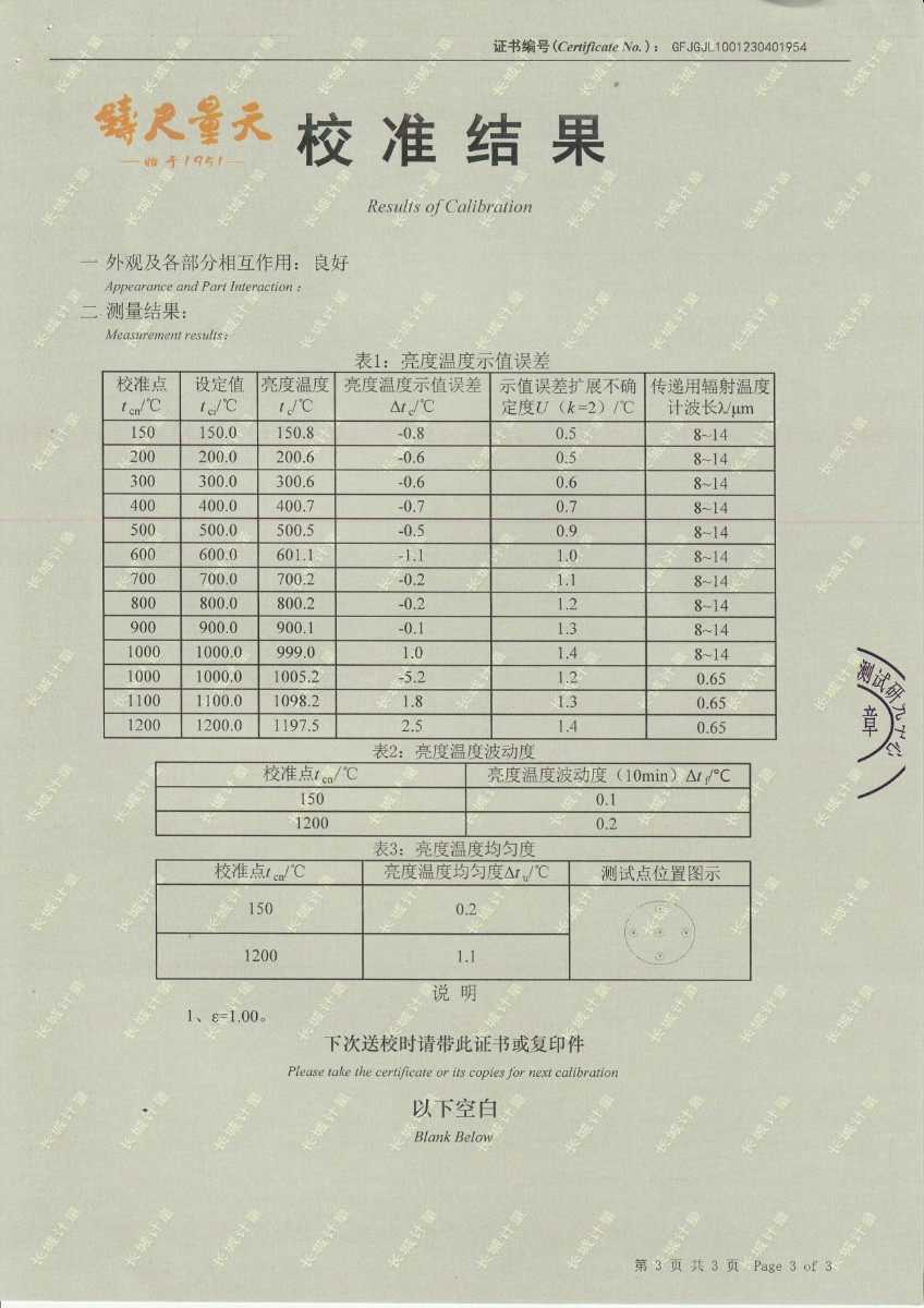 | 上一條:中航工程集成設(shè)備有限公司 黑體輻射源 校準(zhǔn)證書 (1) | 下一條:水三相點瓶凍制與保存裝置校準(zhǔn)證書 |