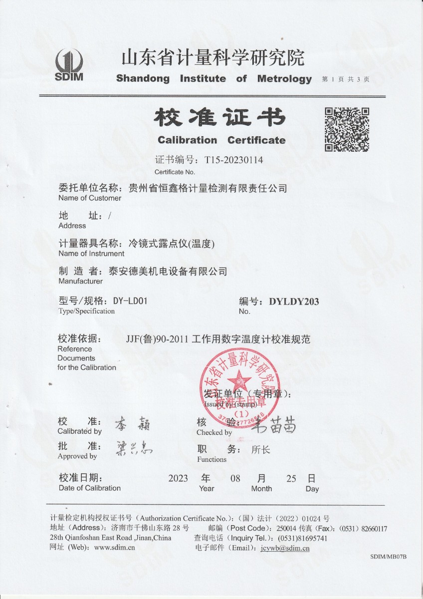 | 上一條:湖南省電網(wǎng)建設(shè)有限公司-面源黑體爐 | 下一條:水三相點瓶凍制與保存裝置校準證書 |
