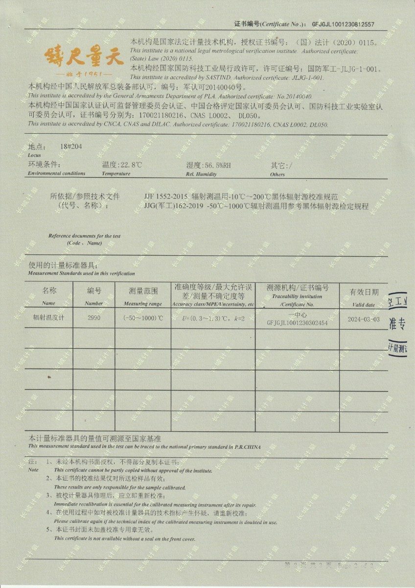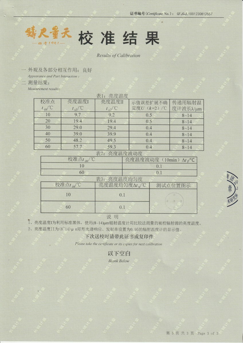 面源黑體爐DYHT1M141校準證書 2023-9-20 本文被閱讀 9423 次