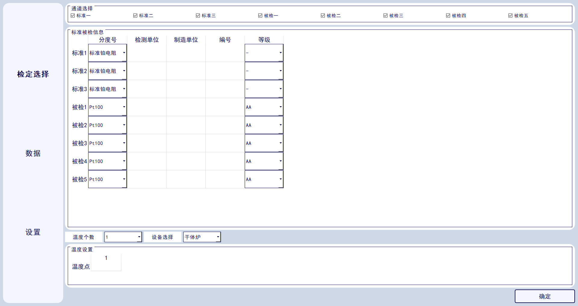 10.設(shè)備可配套干體爐、標(biāo)準(zhǔn)傳感器、備檢傳感器,配備可實(shí)現(xiàn)小型上位機(jī)設(shè)置,實(shí)時(shí)控制干體爐溫度設(shè)置、被檢標(biāo)準(zhǔn)器、被檢傳感器當(dāng)前溫度值、電阻值、波動(dòng)度曲線。
