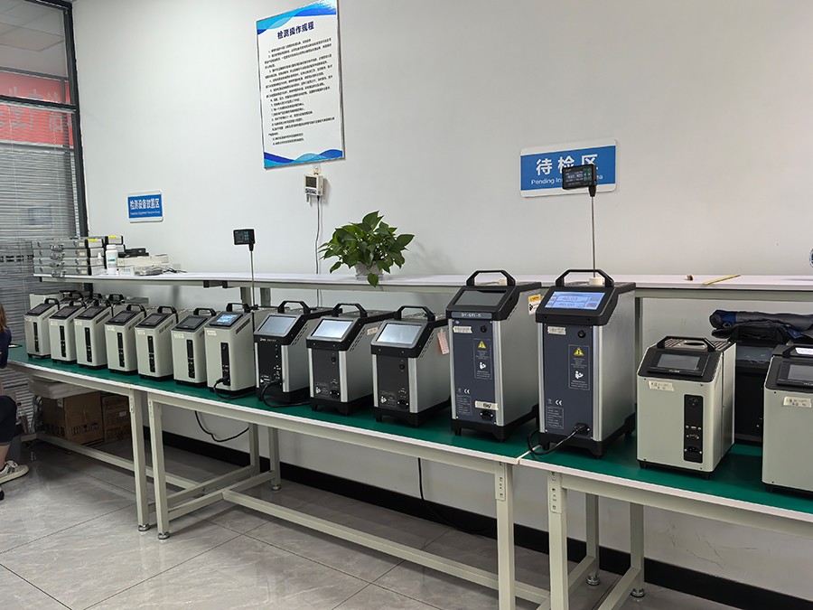 干體爐能夠提供一個(gè)穩(wěn)定、均勻的、準(zhǔn)確的溫度環(huán)境(溫場),提供了類似于恒溫槽(液浴槽)的性能,但是干體爐卻攜帶方便,不需要放置液體。干體爐到達(dá)預(yù)定溫度點(diǎn)并且溫度穩(wěn)定時(shí)間比恒溫槽快5到10倍,這樣可以大大節(jié)省校準(zhǔn)人員的時(shí)間,提高溫度檢定速度。干體爐的便攜性使其能夠到現(xiàn)場進(jìn)行校準(zhǔn)工作,從而解決了恒溫槽在運(yùn)輸移動(dòng)上的困難。