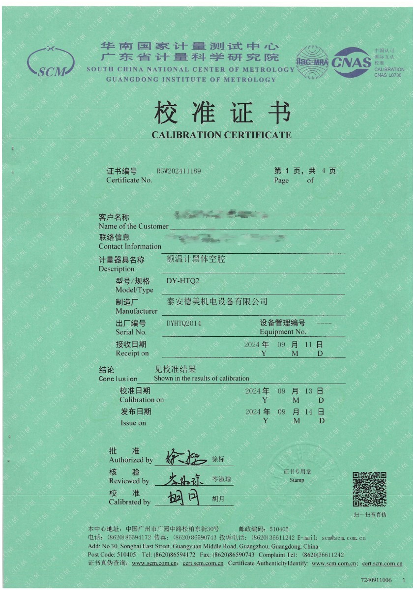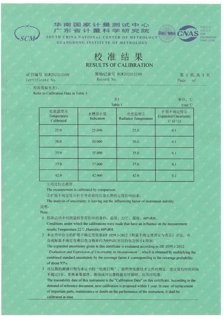 | 上一條:體溫計(jì)專用黑體恒溫槽(-20~100℃)校準(zhǔn)證書 | 下一條:水三相點(diǎn)瓶?jī)鲋婆c保存裝置校準(zhǔn)證書 |