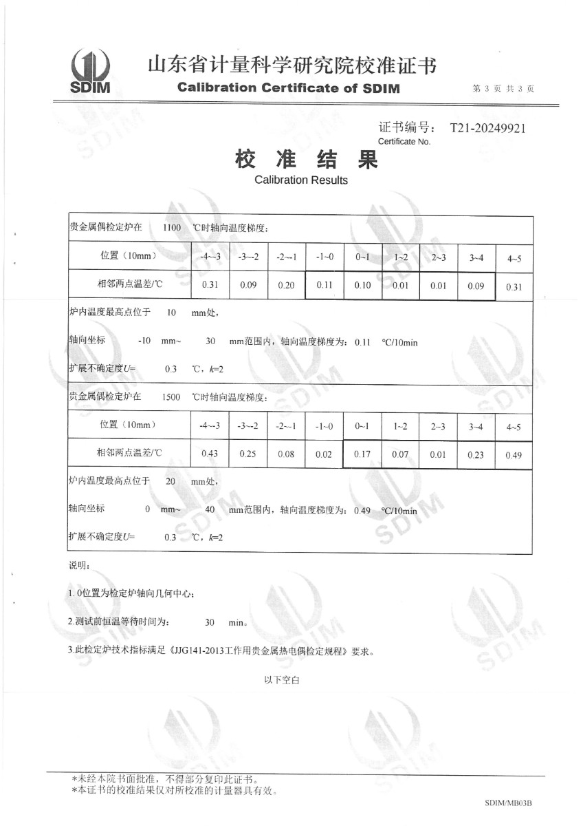 | 上一條:貴金屬熱電偶檢定爐(300~1000℃)校準(zhǔn)證書 | 下一條:水三相點(diǎn)瓶?jī)鲋婆c保存裝置校準(zhǔn)證書 |