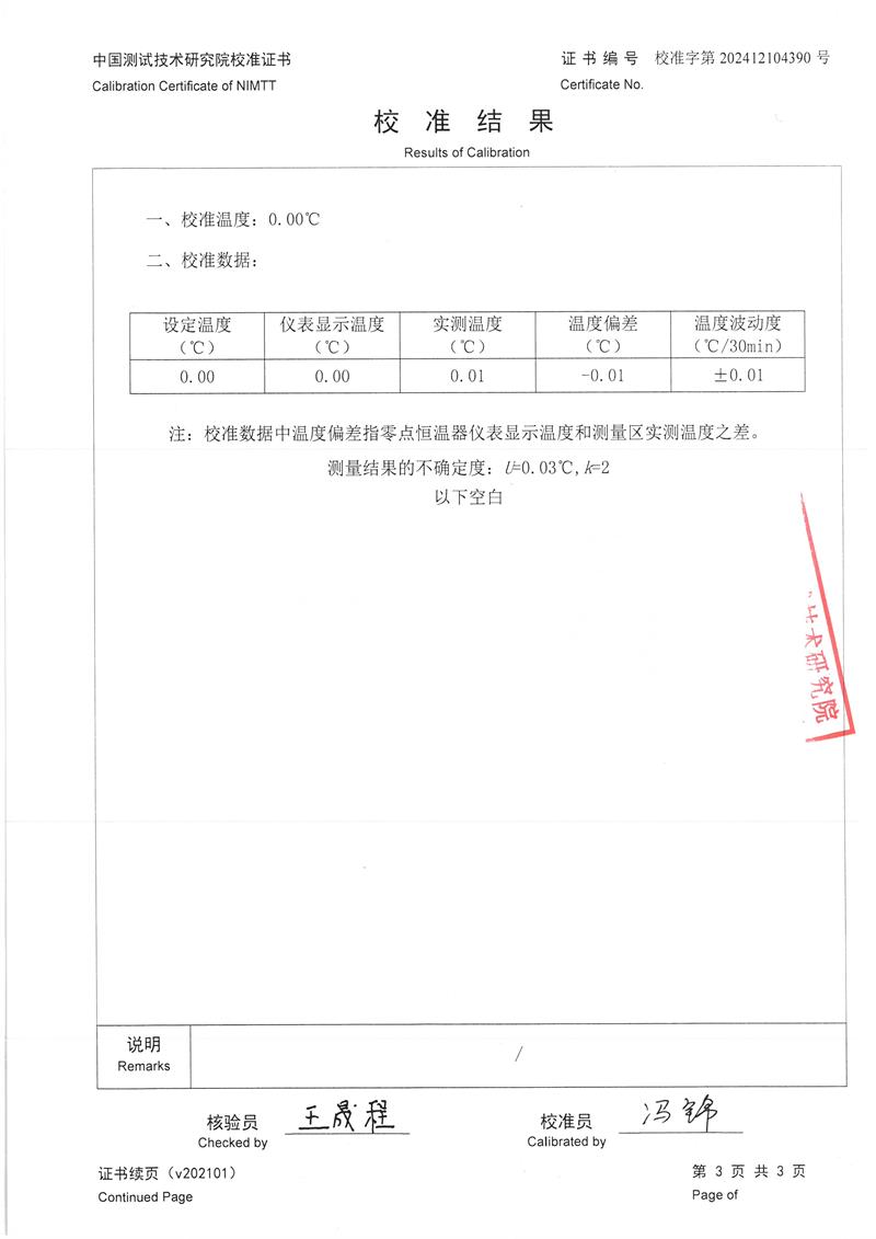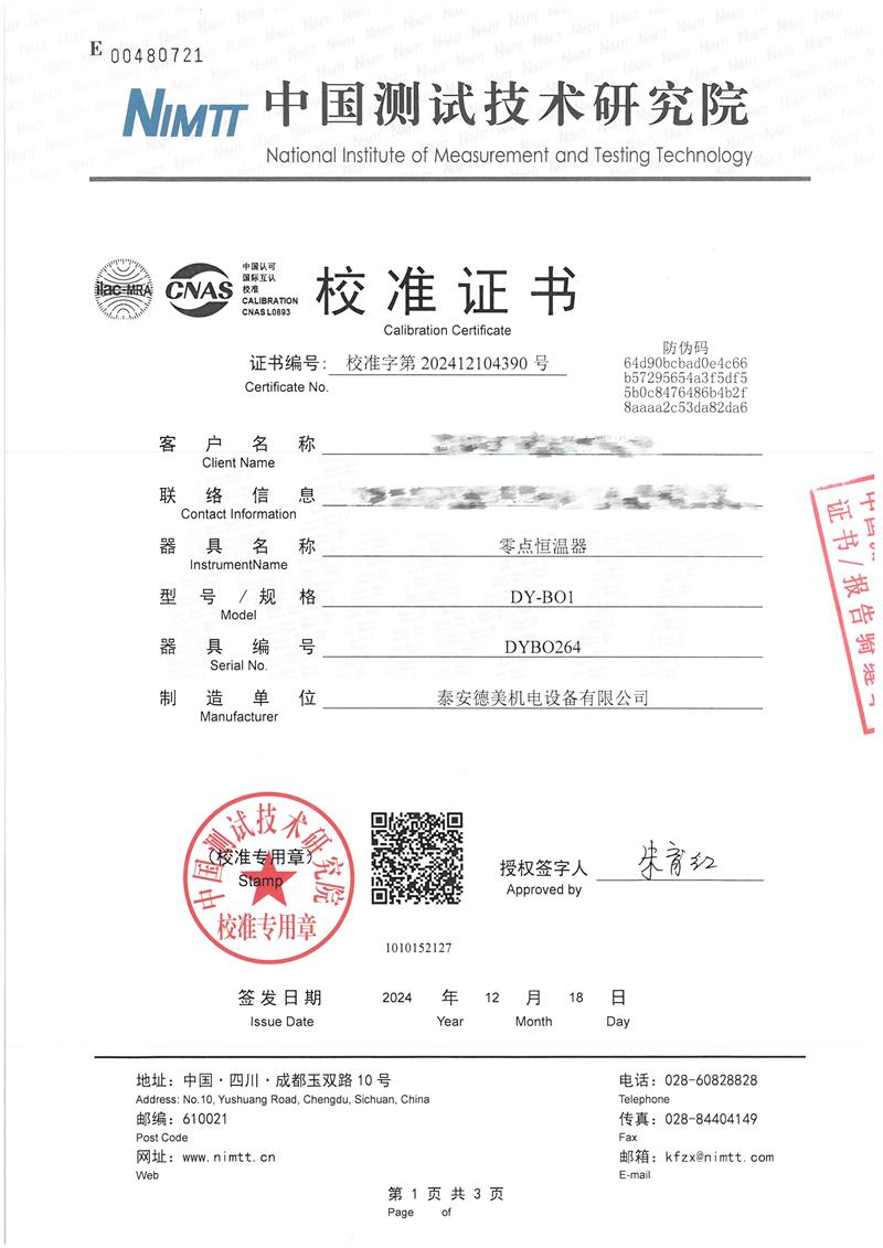 零點恒溫器校準(zhǔn)證書 2024-12-20 本文被閱讀 6941 次