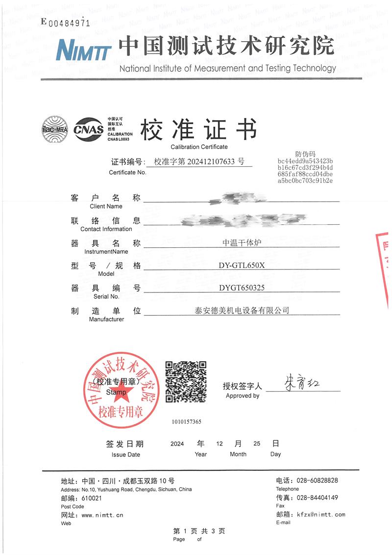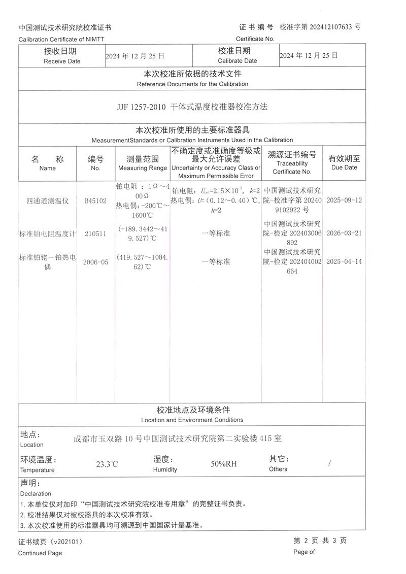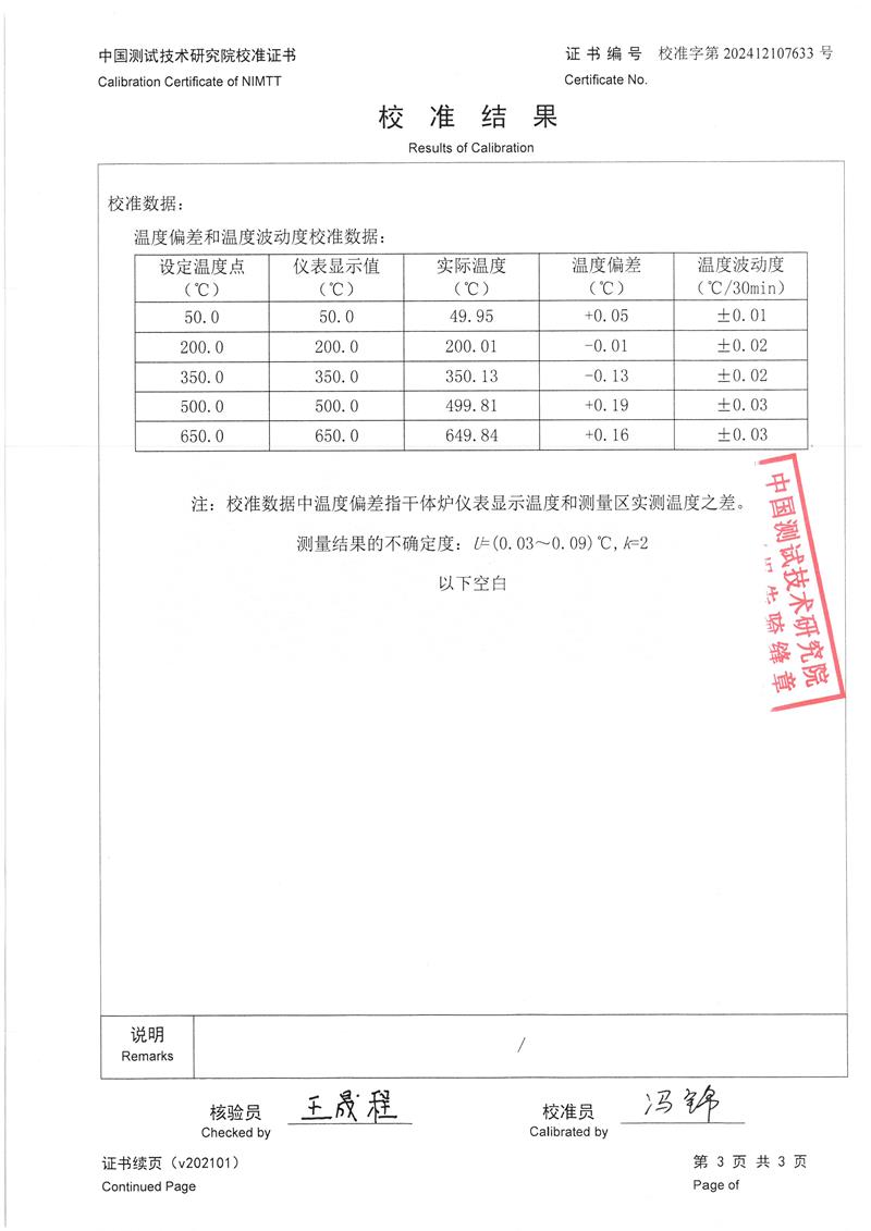 | 上一條:高精度熱管恒溫槽(50~300℃)校準(zhǔn)證書(shū) | 下一條:水三相點(diǎn)瓶?jī)鲋婆c保存裝置校準(zhǔn)證書(shū) |