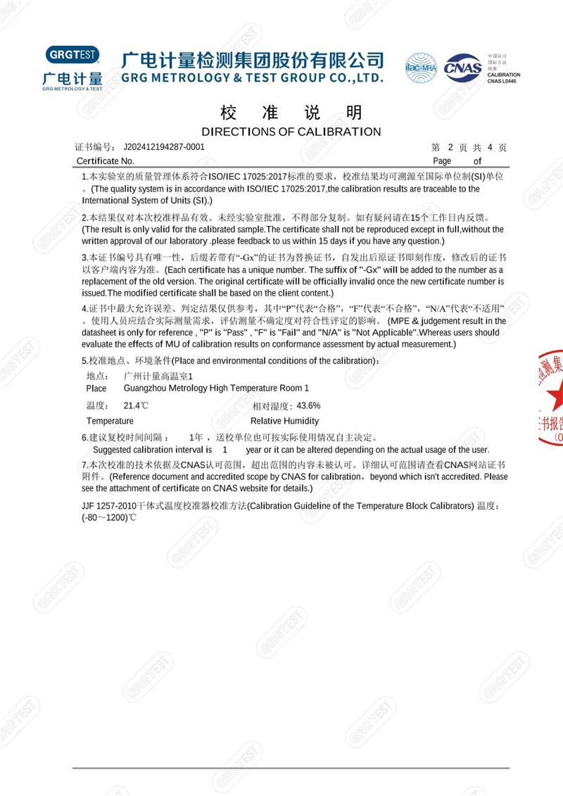 | 上一條:(T型)低溫測(cè)試熱電偶檢定證書 | 下一條:水三相點(diǎn)瓶?jī)鲋婆c保存裝置校準(zhǔn)證書 |
