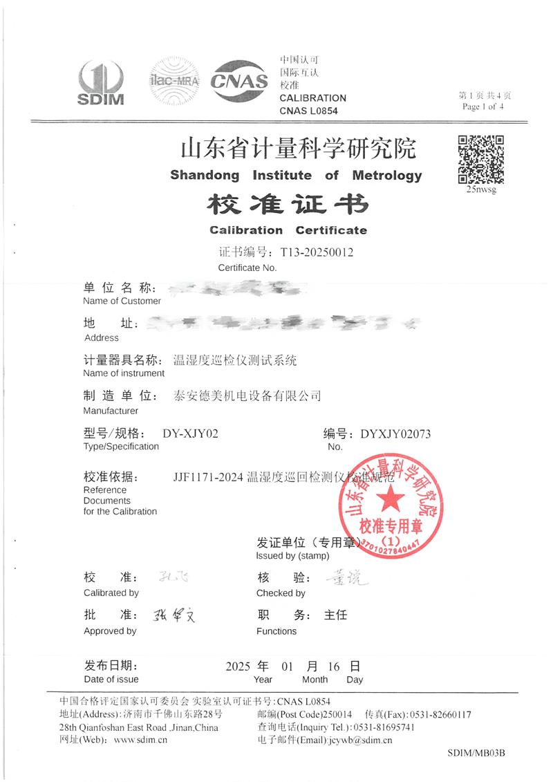 | 上一條:低溫浴式面源黑體爐(-50-80℃)校準(zhǔn)證書(shū) | 下一條:水三相點(diǎn)瓶?jī)鲋婆c保存裝置校準(zhǔn)證書(shū) |