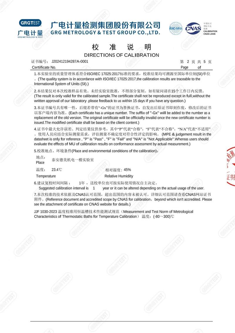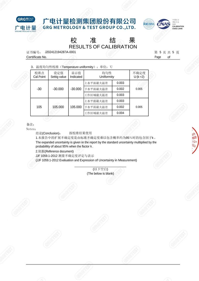 便攜式制冷恒溫槽(-30-105℃)校準證書 2025-1-25 本文被閱讀 5589 次