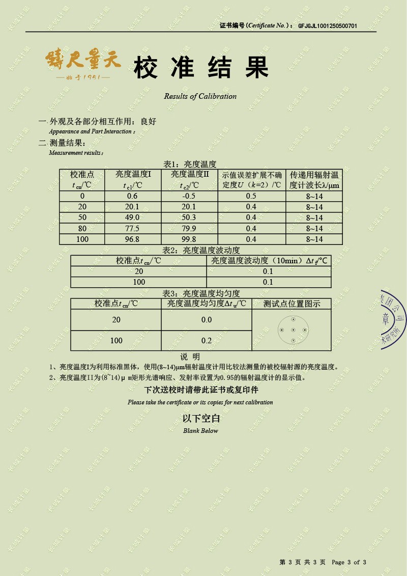 | 上一條:溫濕度巡檢儀測試系統(tǒng)校準證書 | 下一條:水三相點瓶凍制與保存裝置校準證書 |