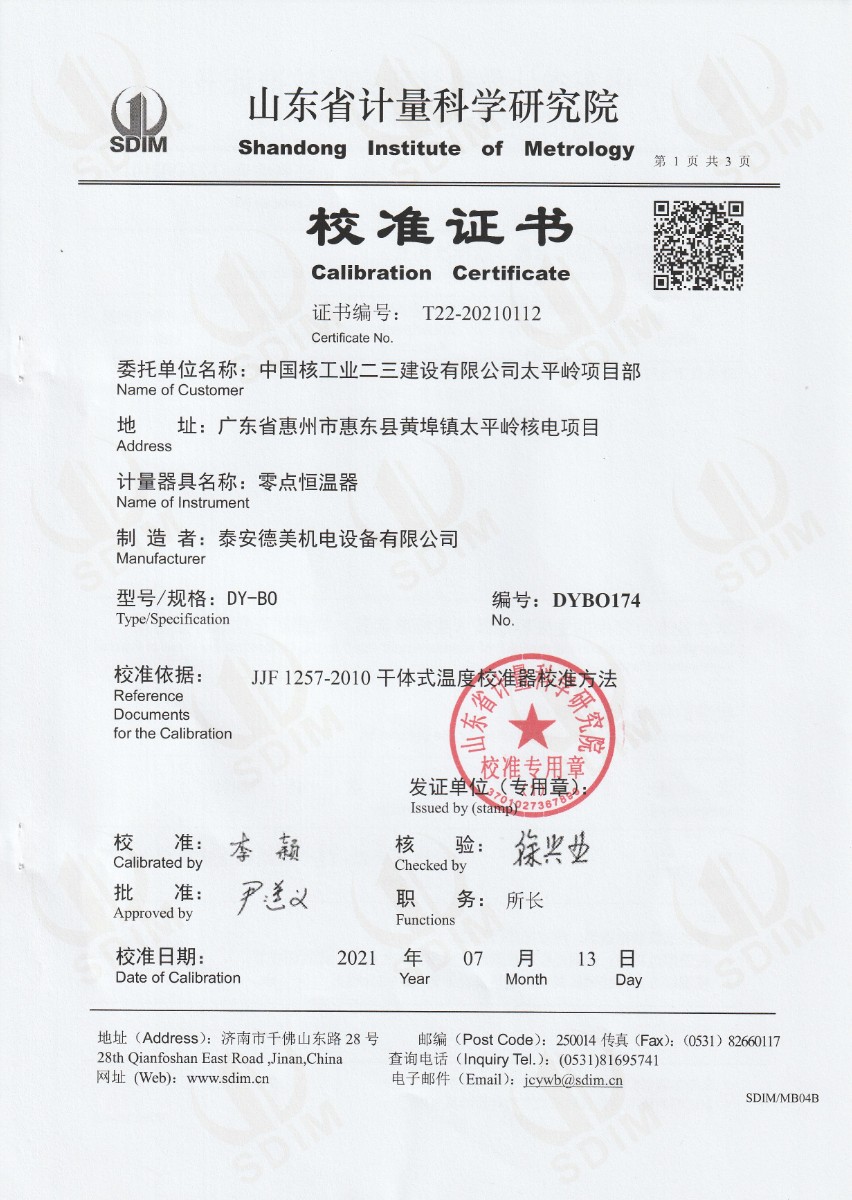 | 上一條:中國核工業(yè)二三建設(shè)有限公司太平嶺項(xiàng)目部-標(biāo)準(zhǔn)鉑銠10-鉑熱電偶 | 下一條:水三相點(diǎn)瓶凍制與保存裝置校準(zhǔn)證書 |