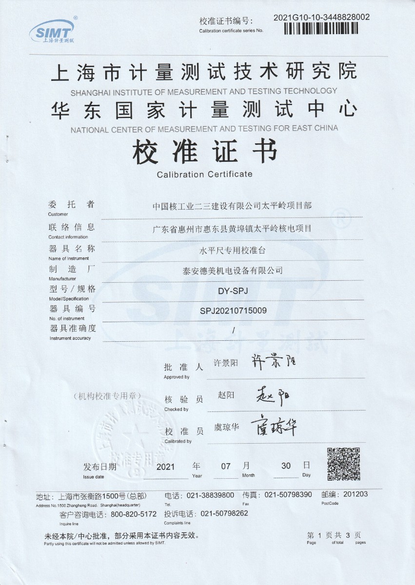 | 上一條:中國核工業(yè)二三建設(shè)有限公司太平嶺項(xiàng)目部-標(biāo)準(zhǔn)鉑電阻溫度計(jì) | 下一條:水三相點(diǎn)瓶凍制與保存裝置校準(zhǔn)證書 |