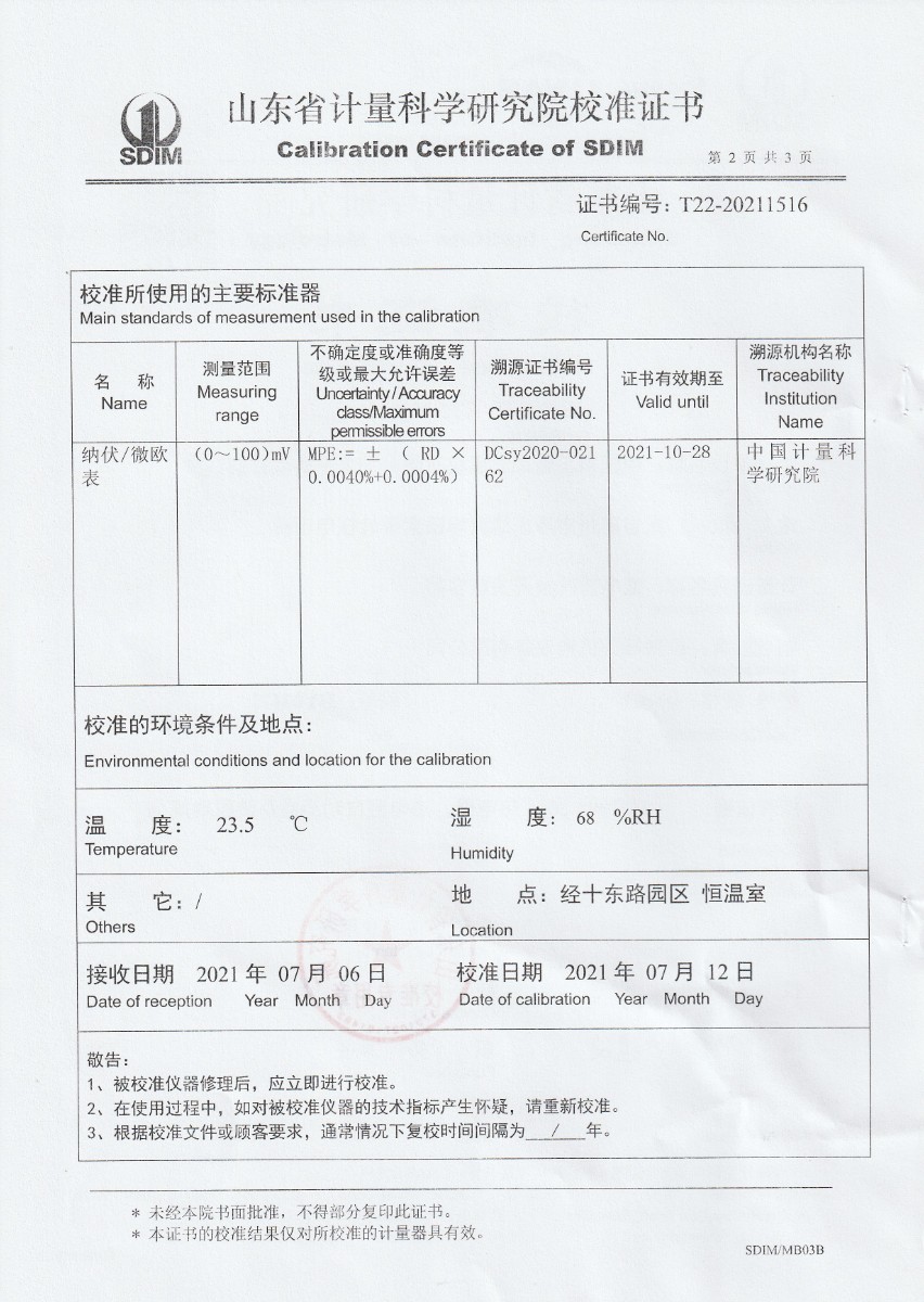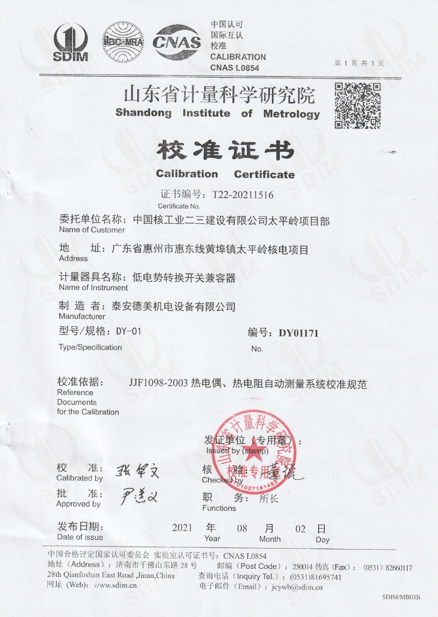 | 上一條:中國核工業(yè)二三建設(shè)有限公司太平嶺項(xiàng)目部水平尺專用校準(zhǔn)臺 | 下一條:水三相點(diǎn)瓶凍制與保存裝置校準(zhǔn)證書 |
