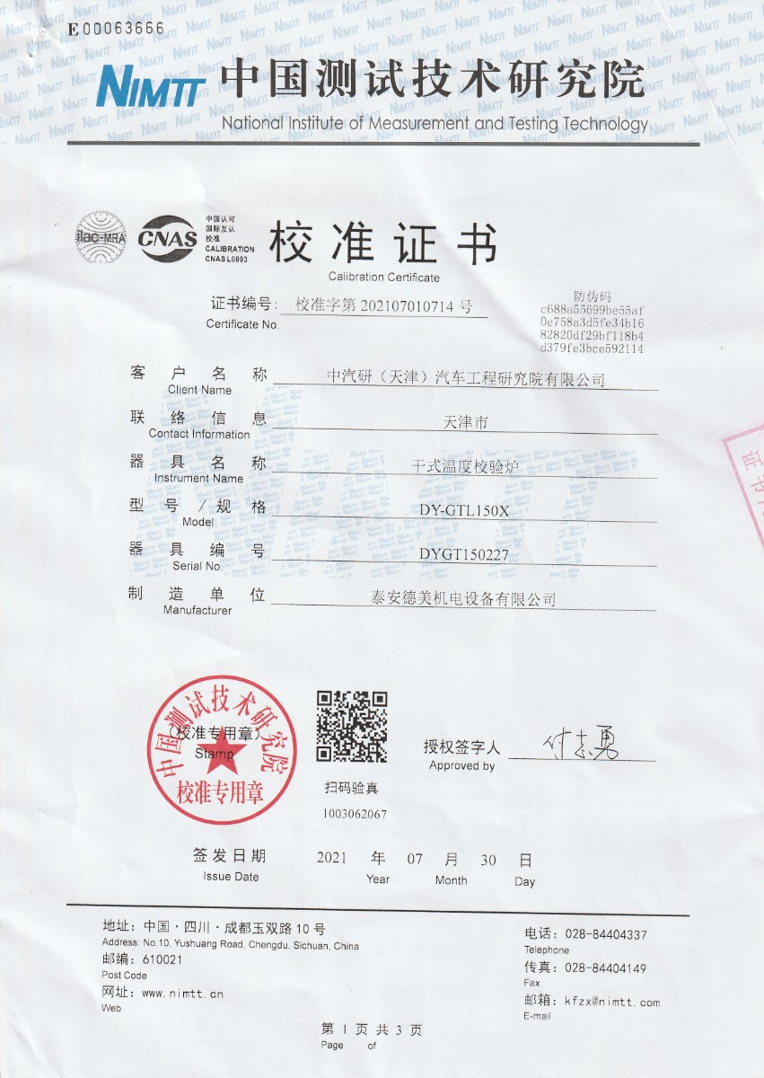 中汽研(天津)汽車工程研究院有限公司-干式溫度校驗爐 2021-8-6 本文被閱讀 21077 次