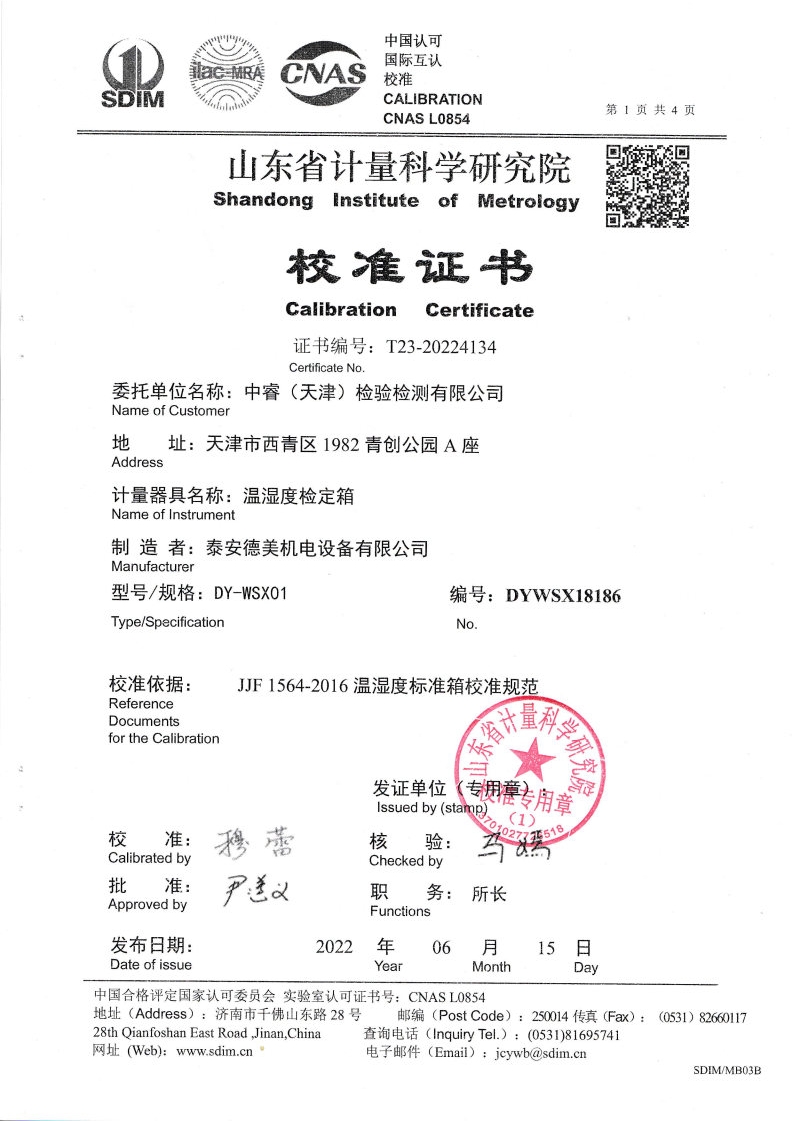 中睿(天津)檢驗檢測有限公司-溫濕度檢定箱