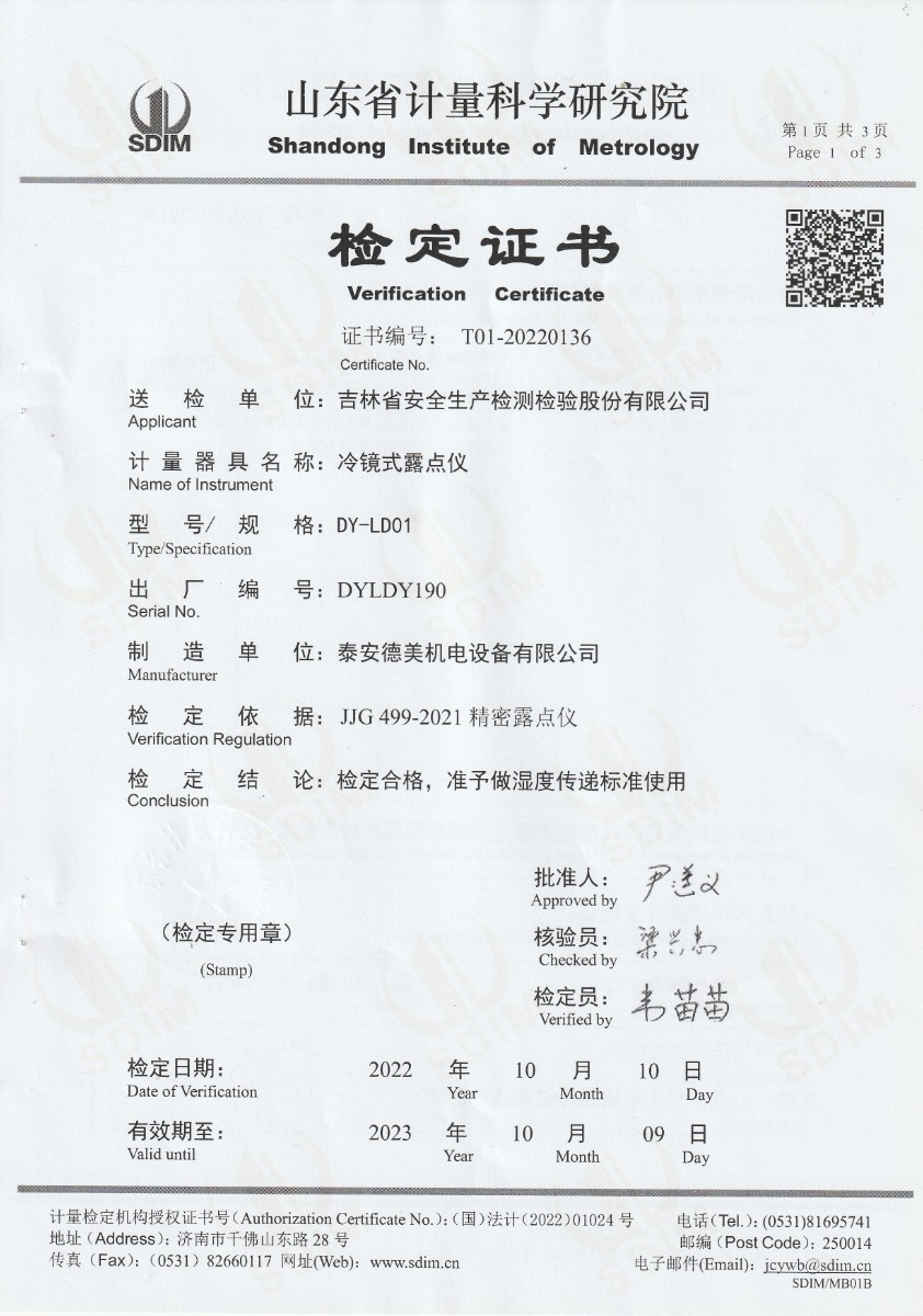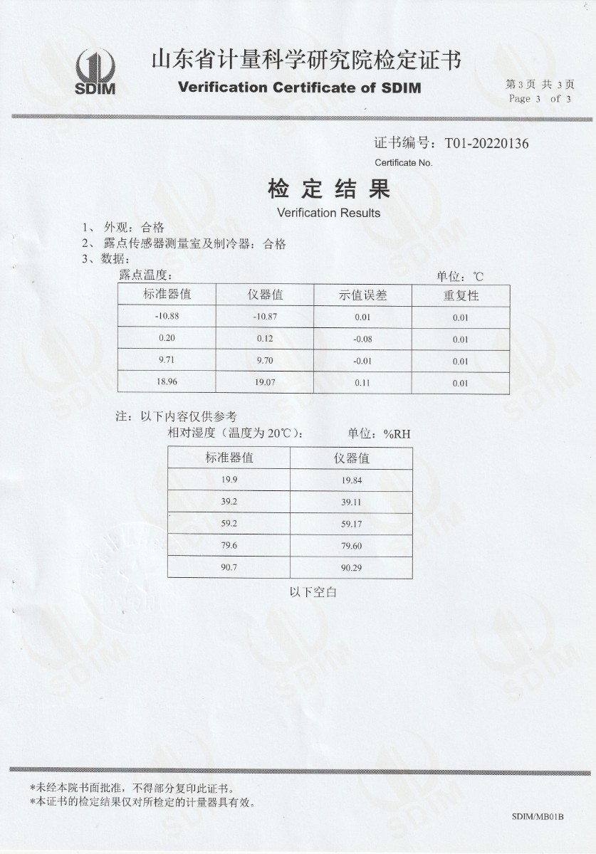| 上一條:吉林省安全生產(chǎn)檢測檢驗股份有限公司-冷鏡式露點儀校準證書 | 下一條:水三相點瓶凍制與保存裝置校準證書 |