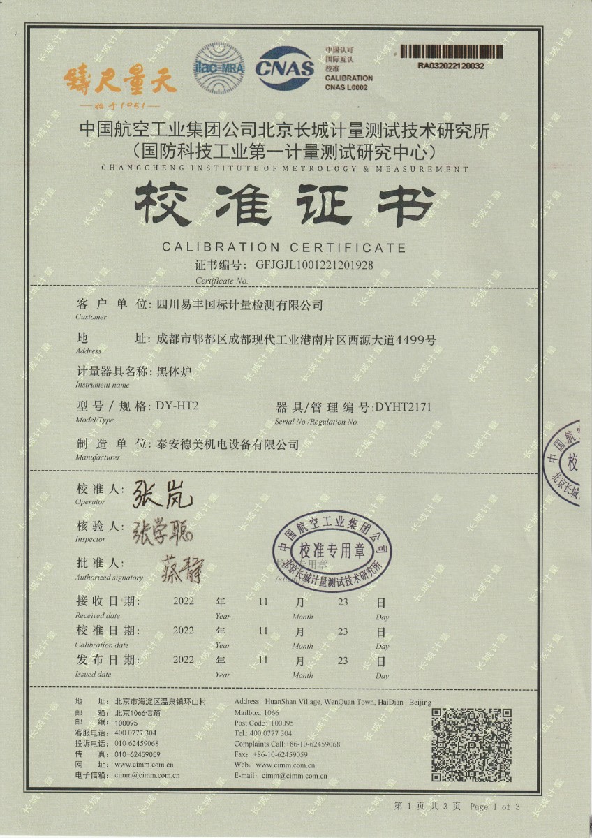 四川易豐國(guó)標(biāo)計(jì)量檢測(cè)有限公司 黑體爐 2023-1-3 本文被閱讀 12461 次