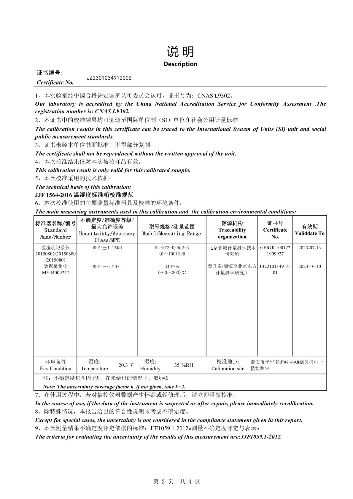 海峽富民生質(zhì)檢技術(shù)服務(wù)有限公司 溫濕度檢定箱校準(zhǔn)證書(2)